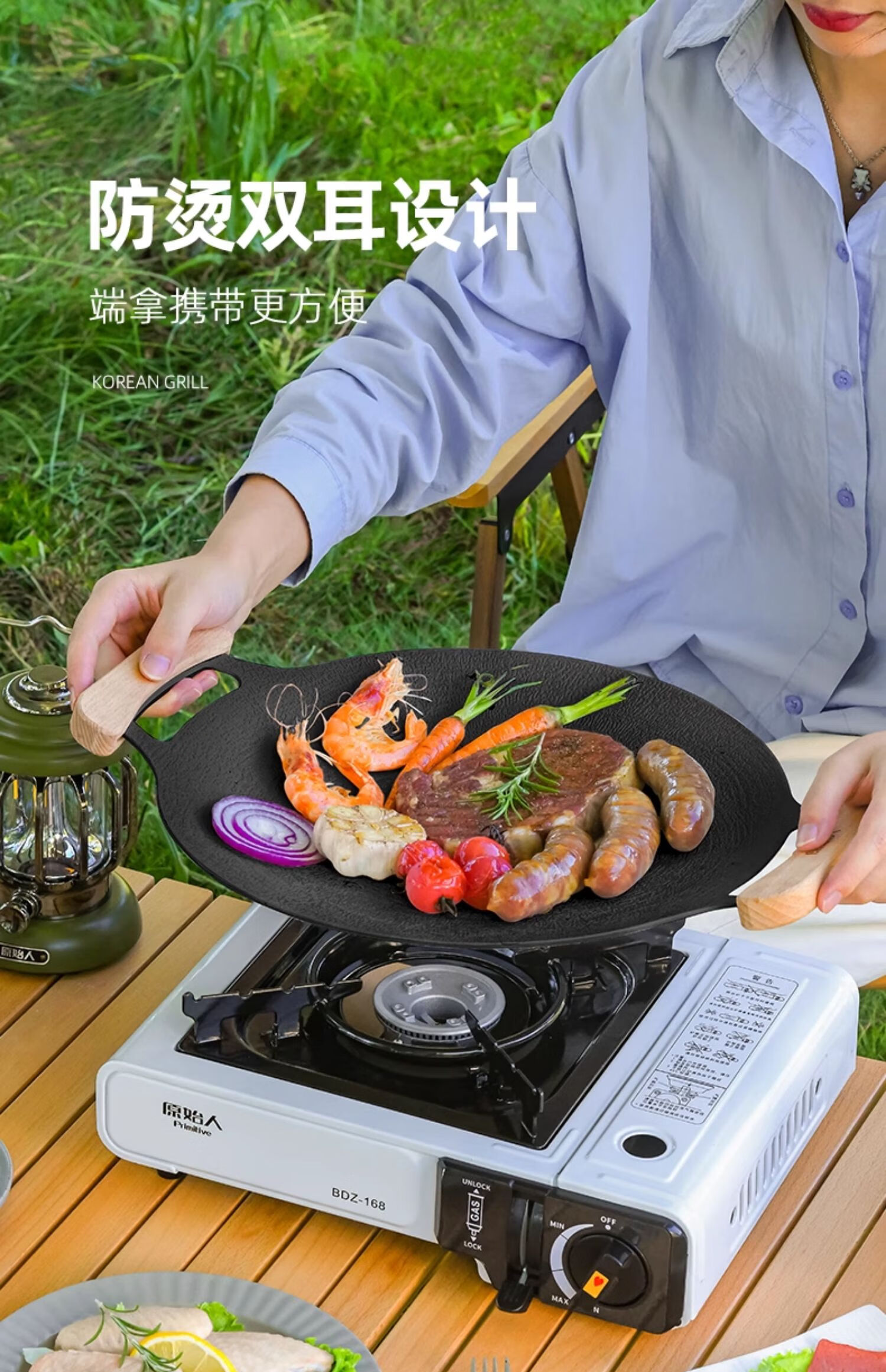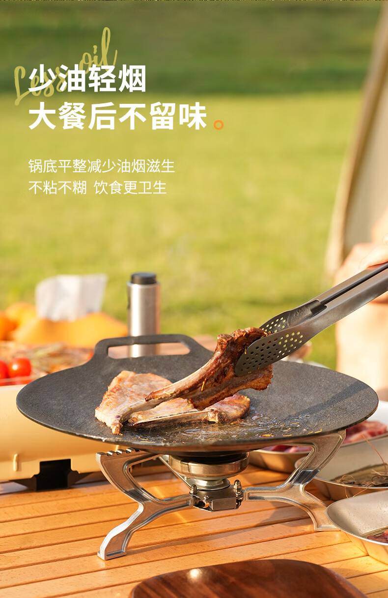 原始人户外烤盘烧烤煎盘韩式烤肉盘锅露营卡式炉铁板烧不粘野餐野炊家用 29cm白色烤盘(配防烫手柄)
