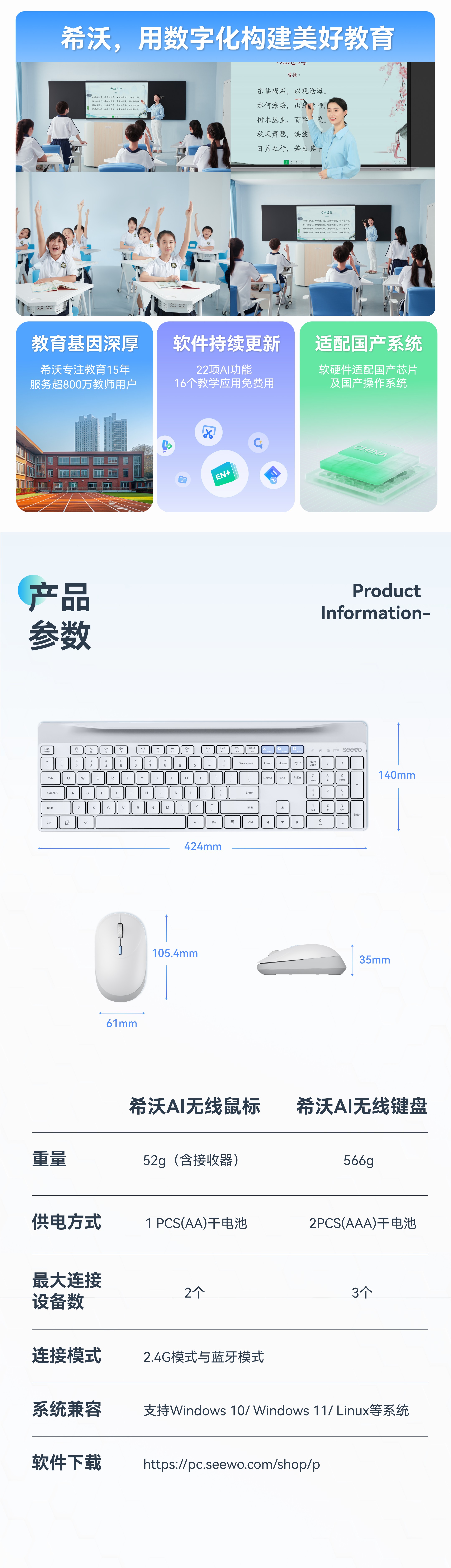 seewo希沃ai键鼠套装 智能鼠标键盘I02W 键鼠套装I02W-A