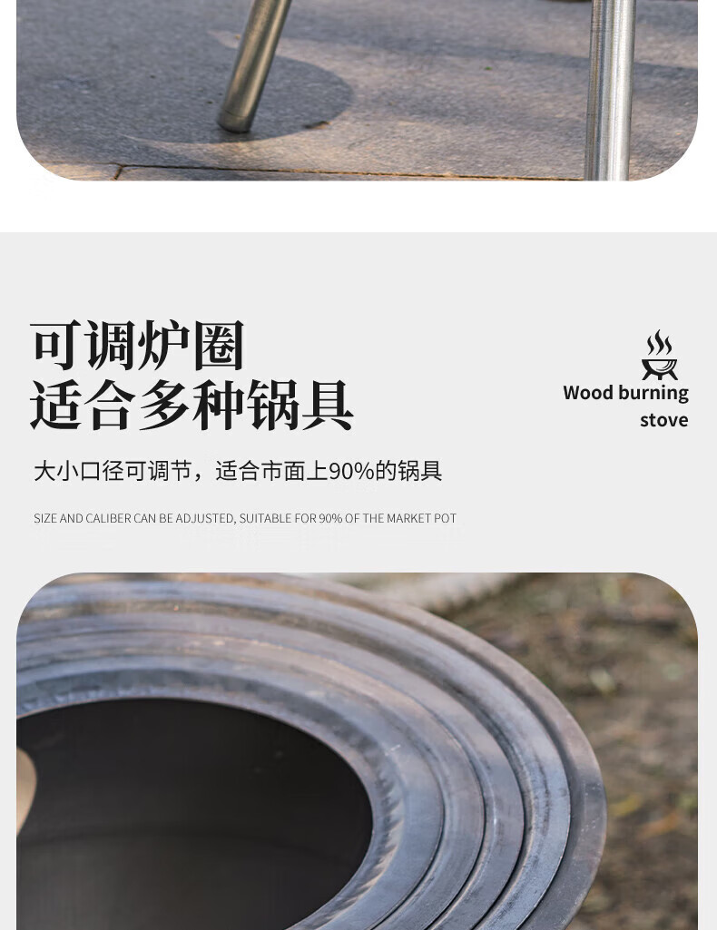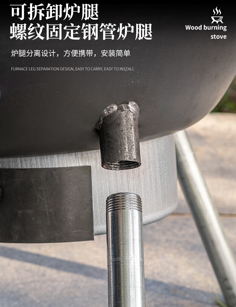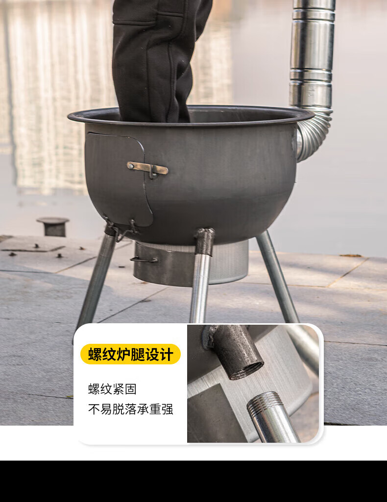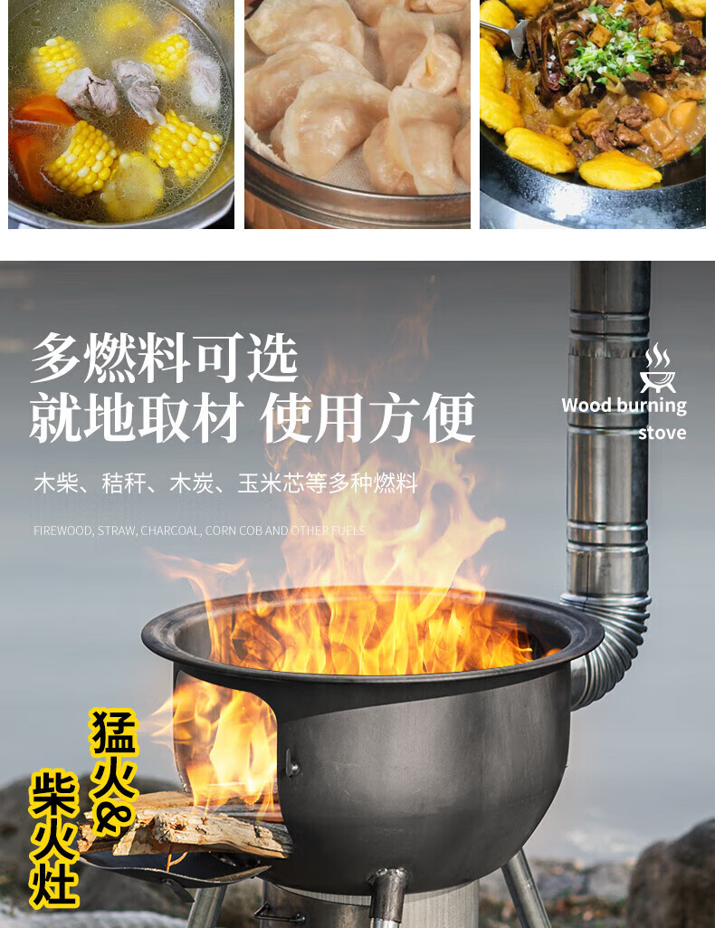 柴火灶农村家用灶户外可移动柴火炉地锅铁锅家用灶台烤火取暖炉 炉圈 特厚款(一体冲压 可拆卸炉腿)