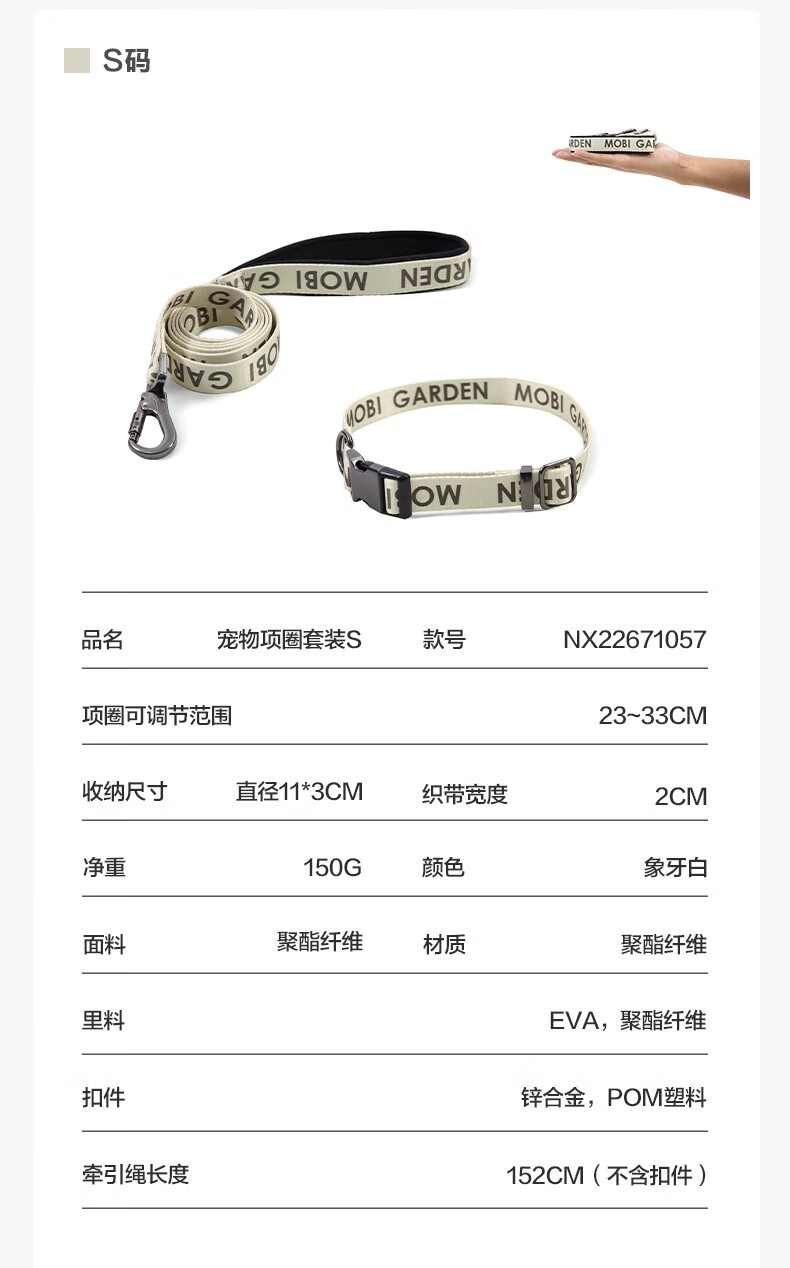 牧高笛(MOBIGARDEN) 宠物项圈 户外露营便携宠物犬牵引绳可调节宠物项圈 S(2cm)