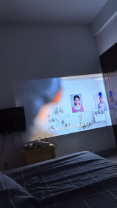 第一次接触家用投影仪, 对比了很多个牌子,还是这一款的性价比最高,趁着活动赶紧入手,抱着试试看的态度买下了这款! 遵循核心参数选择原则 亮度标准需达标:客厅使用需2000 ANSI流明以上,卧室建议1500 ANSI流明起步,这款4000ANSI。 分辨率看原生指标:真4K需3840×2160物理分辨率,0.66英寸DMD芯片为基准。 对比度决定层次感:动态对比度≥10000:1可展现星空场景细节,原生对比度建议≥1500:1,迈为H6达到4000:1 用了几天,总的来说这款投影仪非常好用,开机无广告,能自动对焦自动画面校正,系统简单操作流畅,画面清晰,白天效果很不错晚上就更好,机器噪音很小,播放视频声音效果很好,视频是白天效果,图片是和电视同时对比,晚上效果最好,白天效果如果有布姆效果也可以,不拉窗帘不影响观看,总体来说很满意,希望设备耐用。 外形外观:虽然不是便携式,不能歪斜播放调框,但有不错投影亮度,对比很对机型,很少有4000ANSI亮度设备,对比度4000:1有很清晰投影色彩:饱满色正音质音效。电脑、 ipad 投屏也比较清晰,投屏