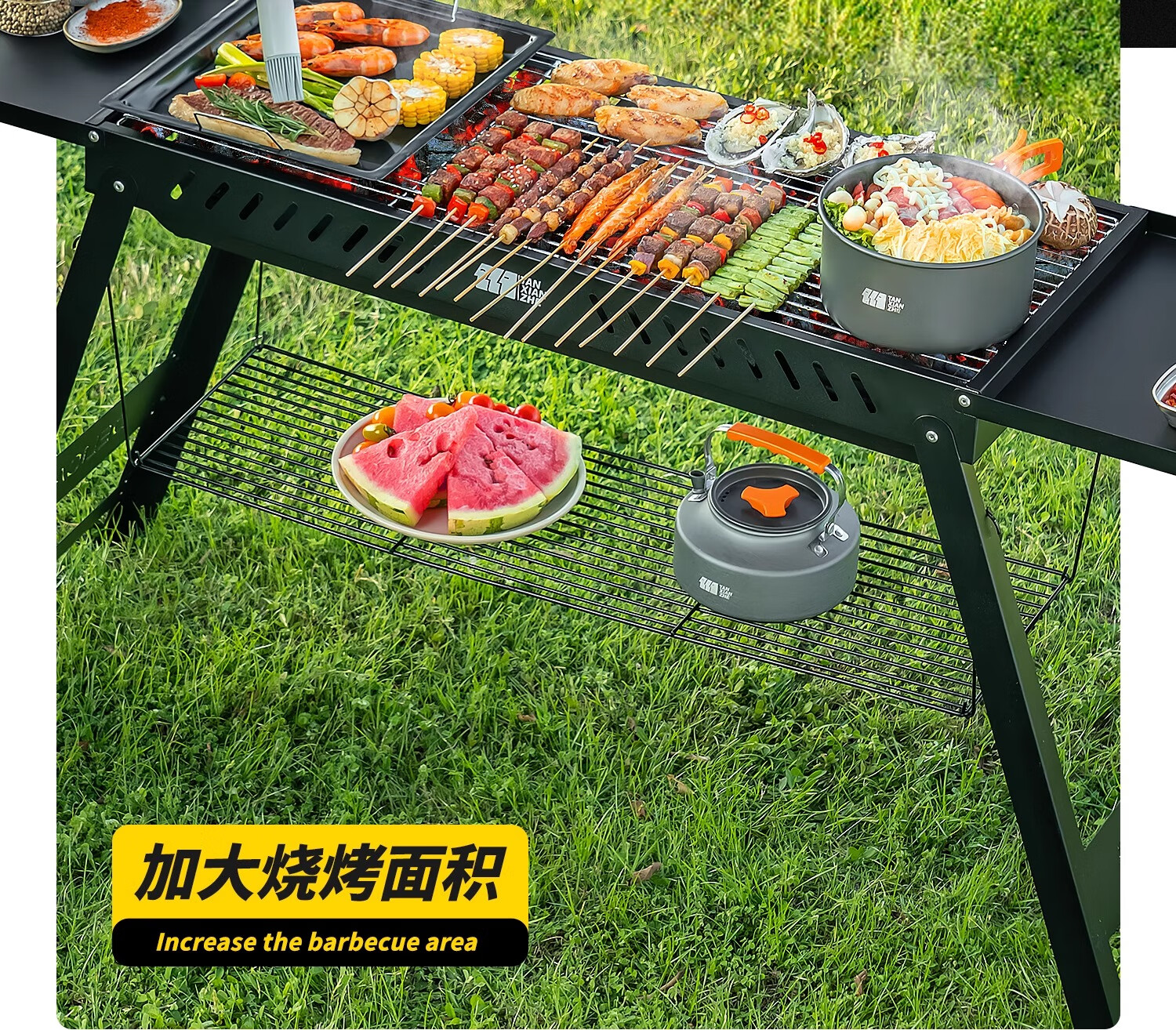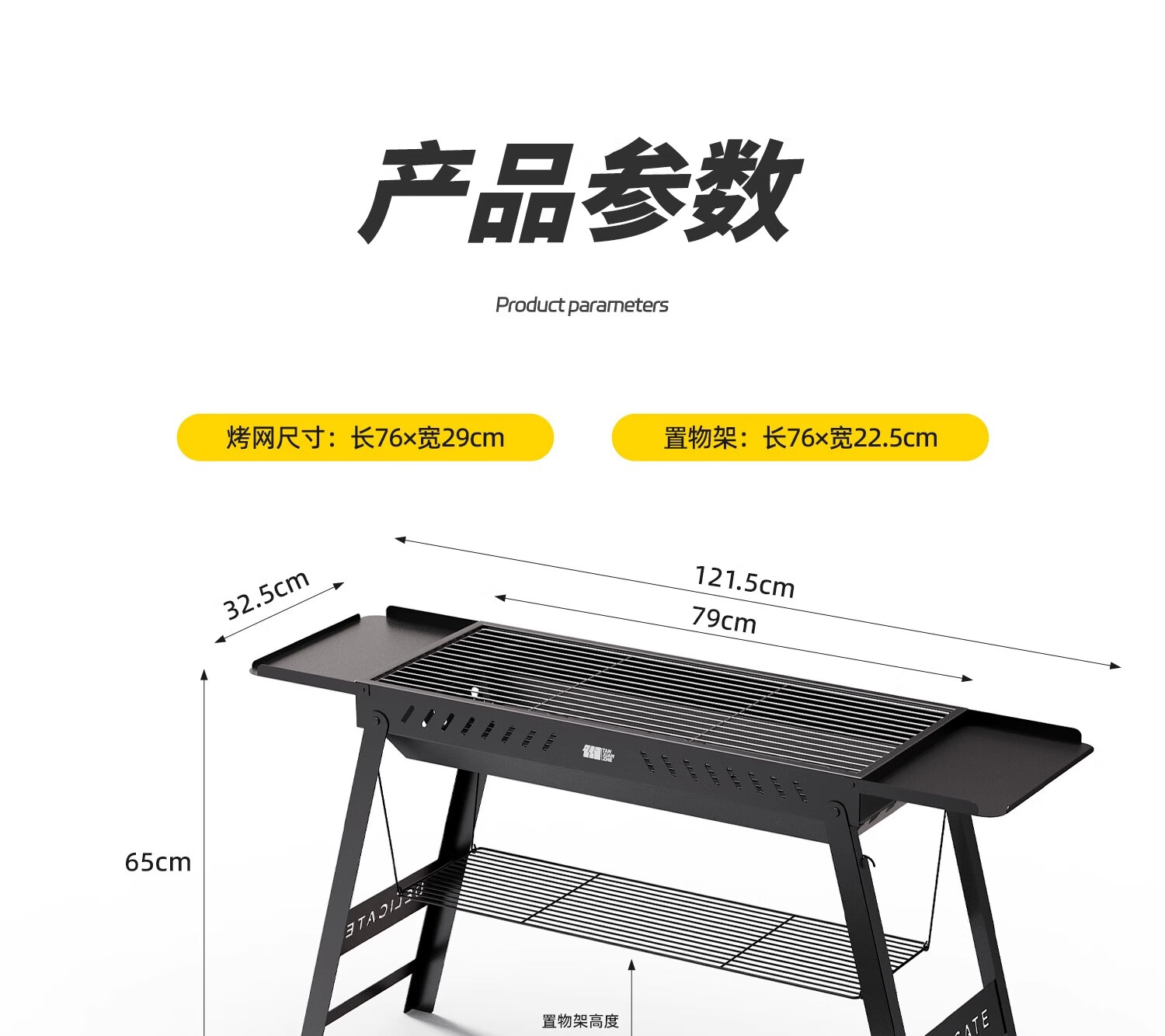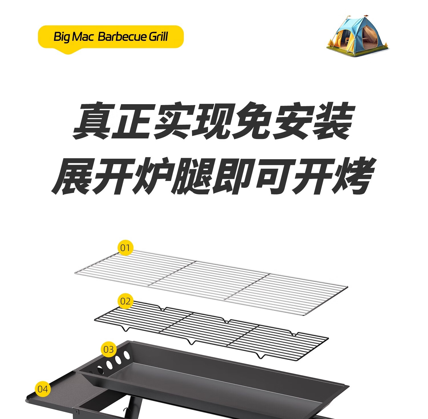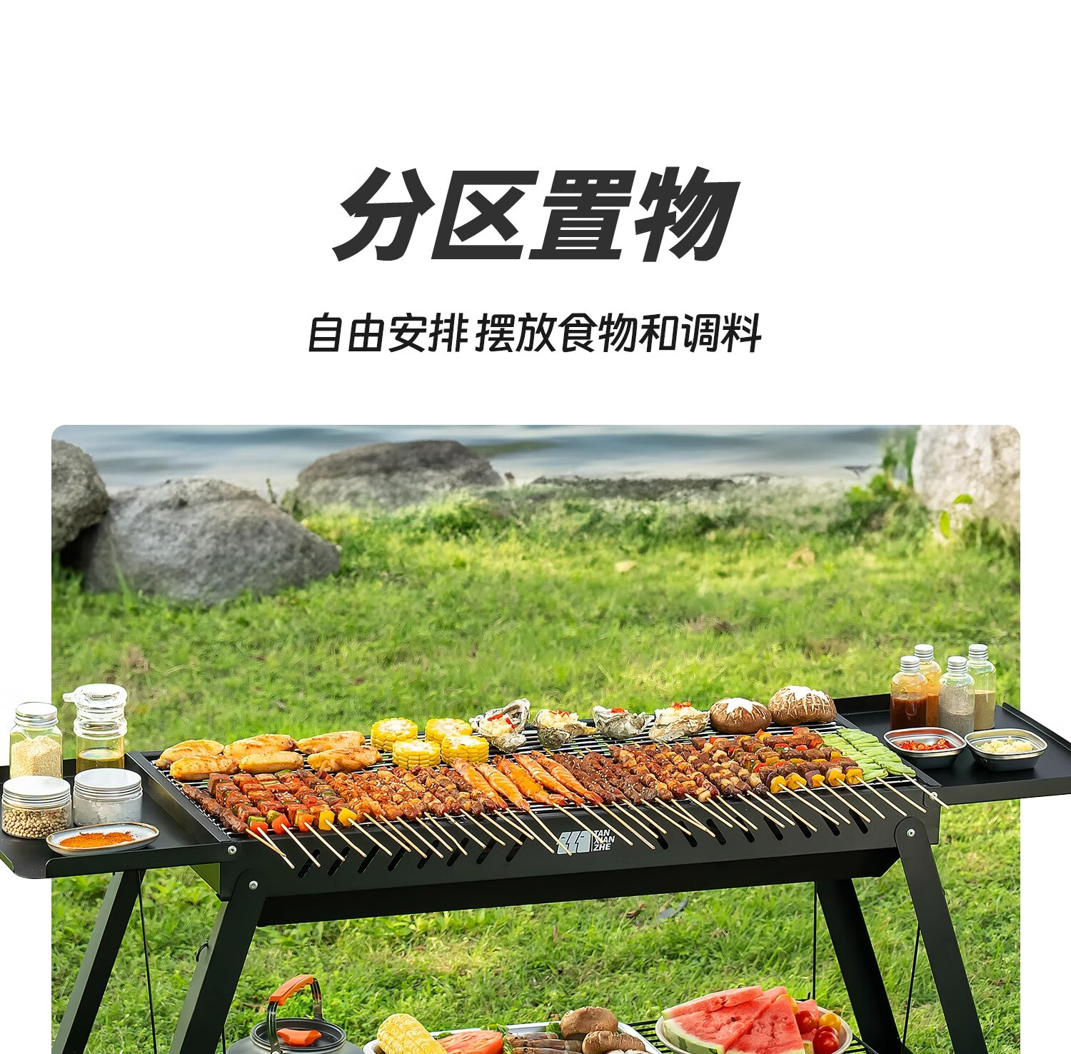 探险者户外烧烤炉便携式折叠大号烧烤架家用木炭烤肉野外用具碳烤炉子 巨无霸烧烤架+置物架