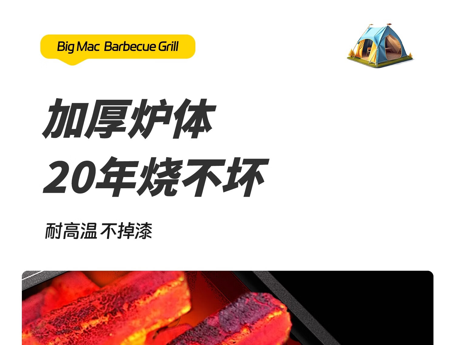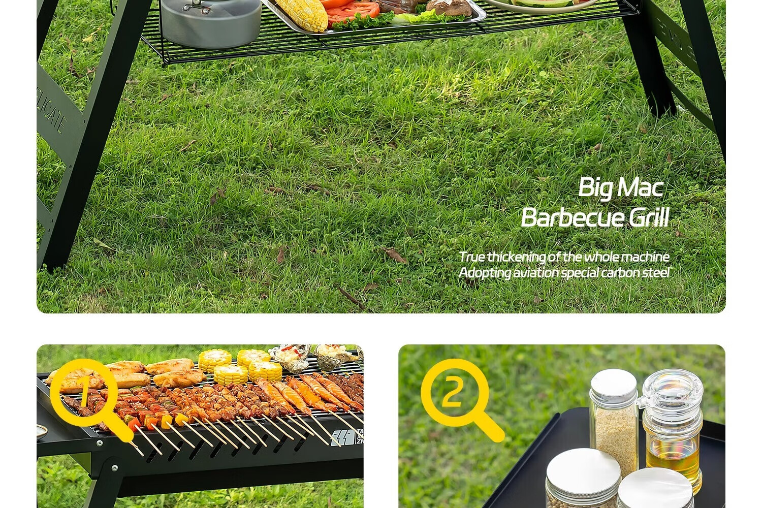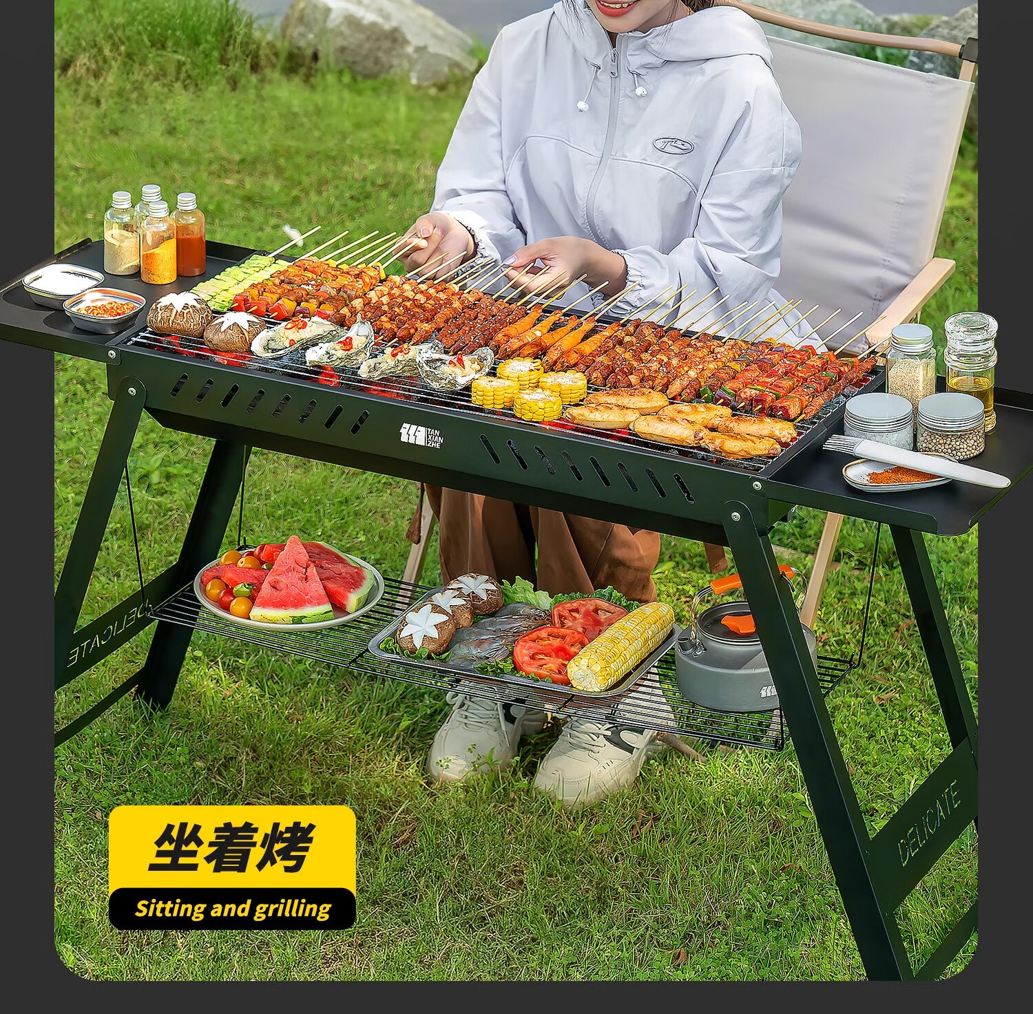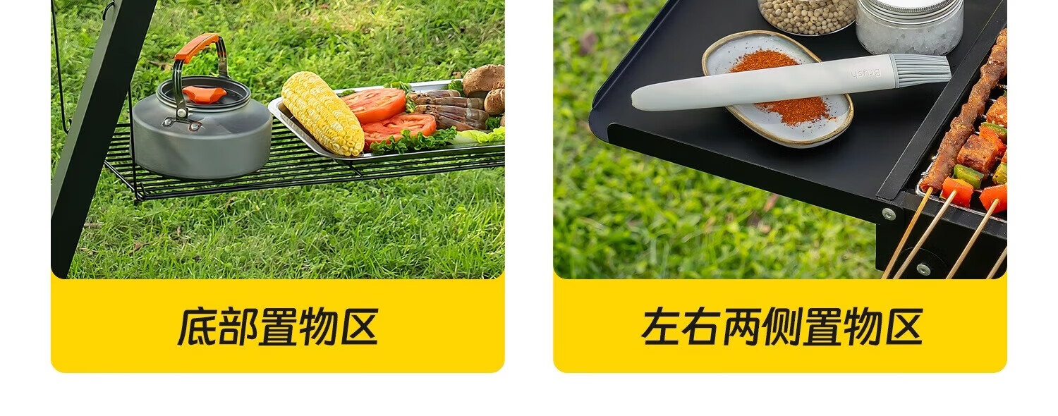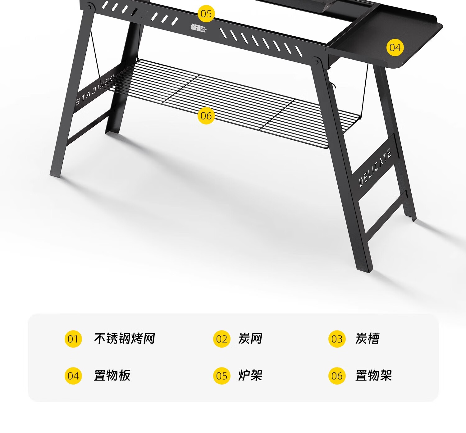 探险者户外烧烤炉便携式折叠大号烧烤架家用木炭烤肉野外用具碳烤炉子 巨无霸烧烤架+置物架