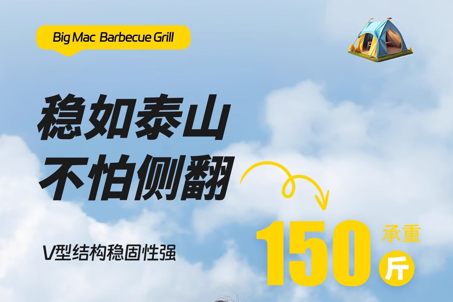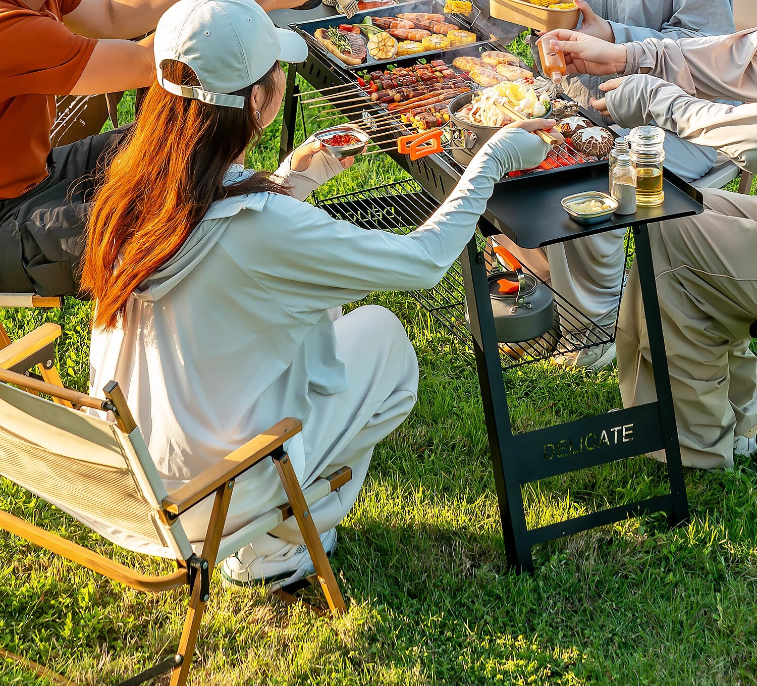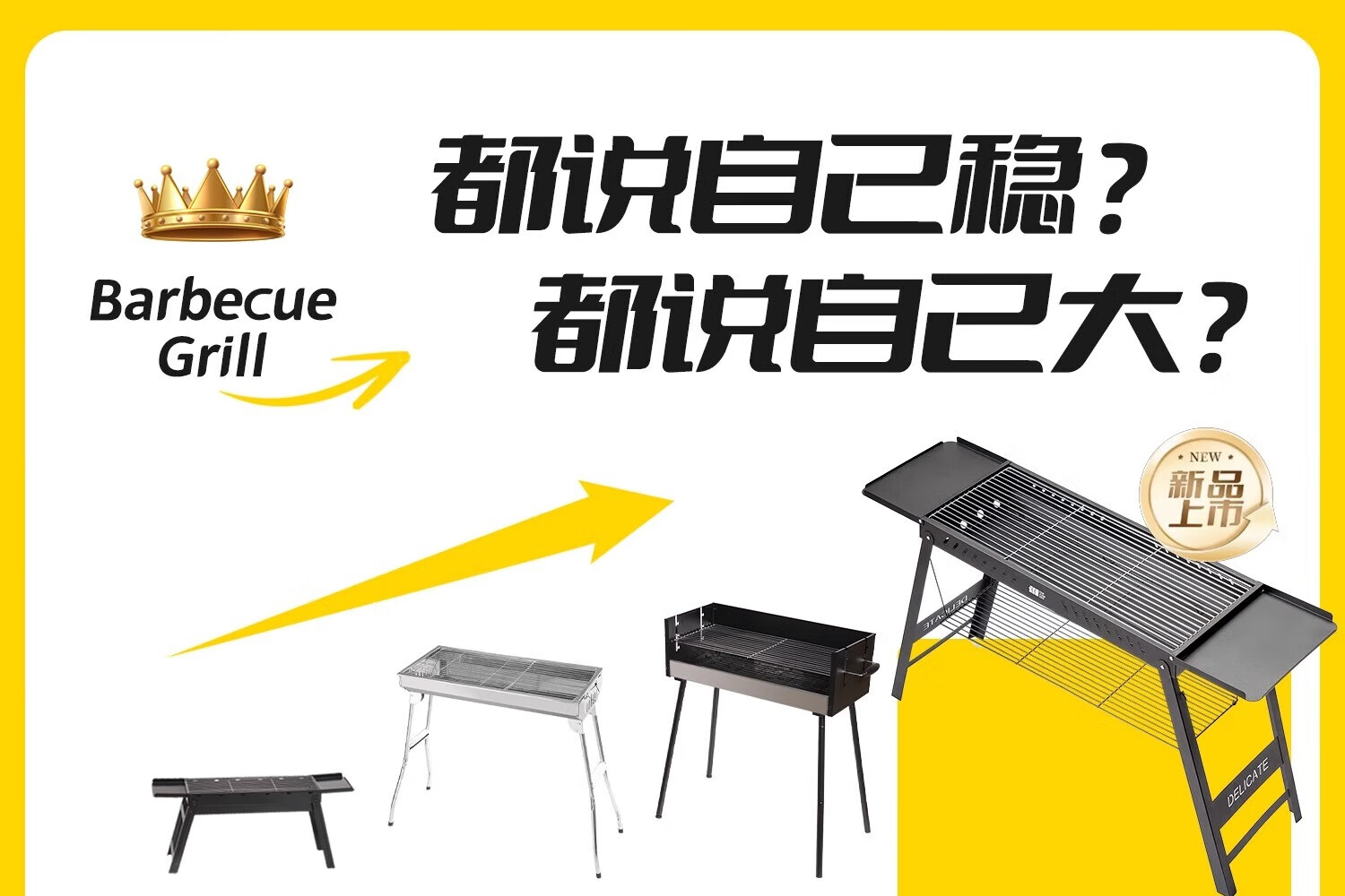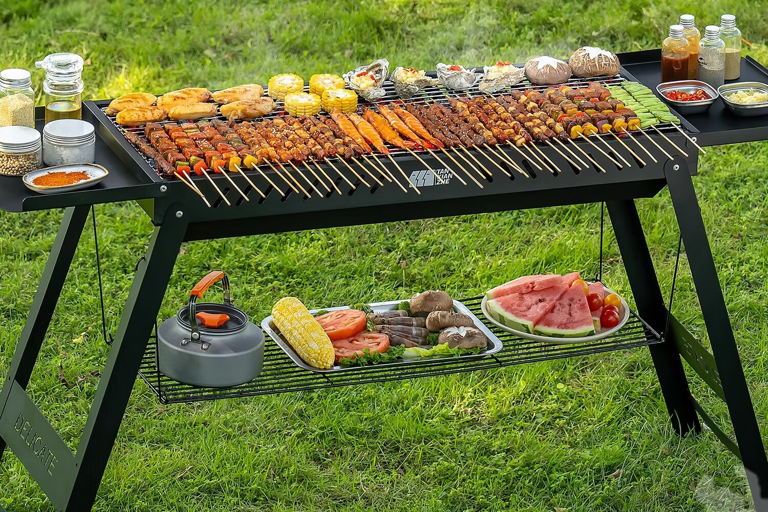 探险者户外烧烤炉便携式折叠大号烧烤架家用木炭烤肉野外用具碳烤炉子 巨无霸烧烤架+置物架