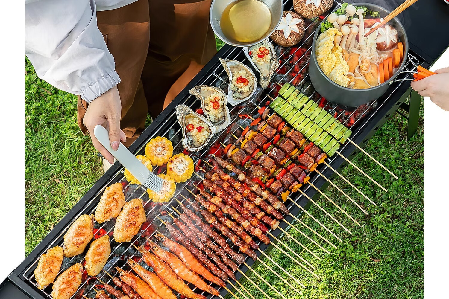 蝶烤香 锌铁合金加厚羊肉串户外大码木炭烧烤炉商用烧烤架100长18内宽 一米长炉子套二