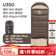 Naturehike挪客睡袋成人户外露营超轻秋冬棉睡袋 办公室内午休加厚防寒被子 中空棉-陶泥灰U350+送充气枕