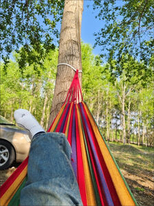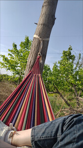 这款吊床非常棒,布料很厚实,一看就很耐用,承重也很让人放心,携带方便。另外物流非常快,不管是自留还是送人都很合适,春天来了正好可以用上了。