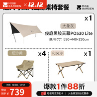 牧高笛(MOBIGARDEN)俊庭黑胶天幕 户外露营蝶形防晒遮阳布防雨大空间黑胶天幕 俊庭黑胶PO530天幕*1+月亮椅*4+碳钢蛋卷桌L套餐
