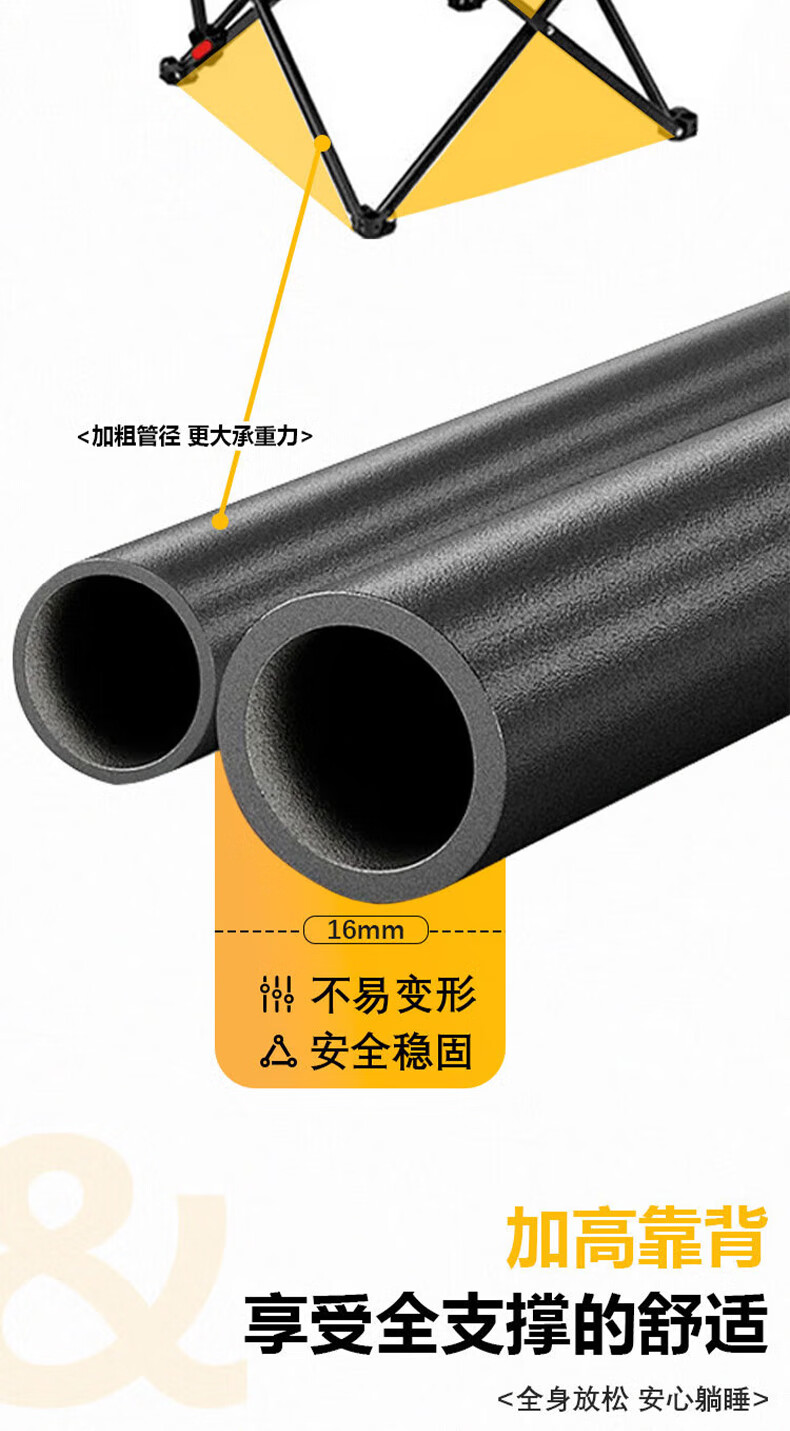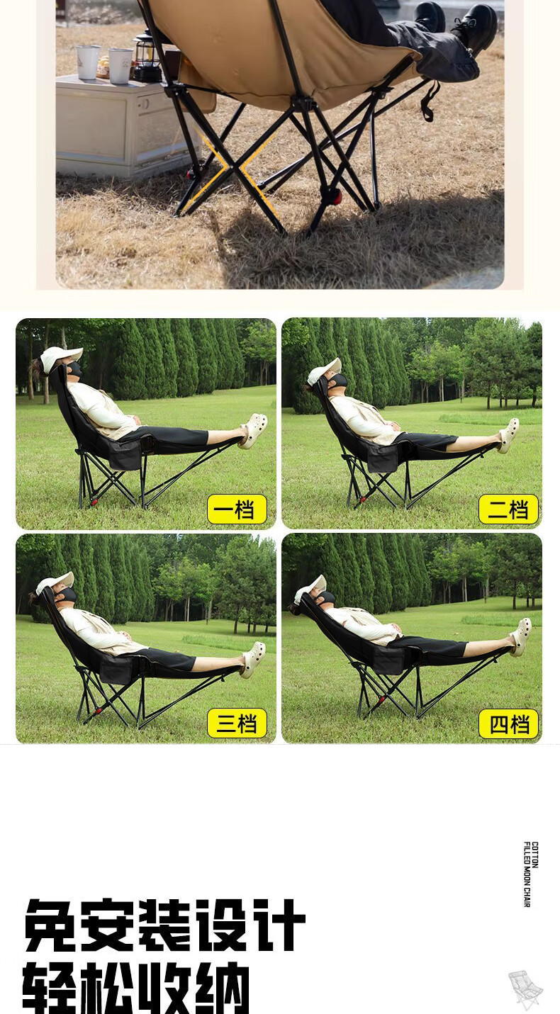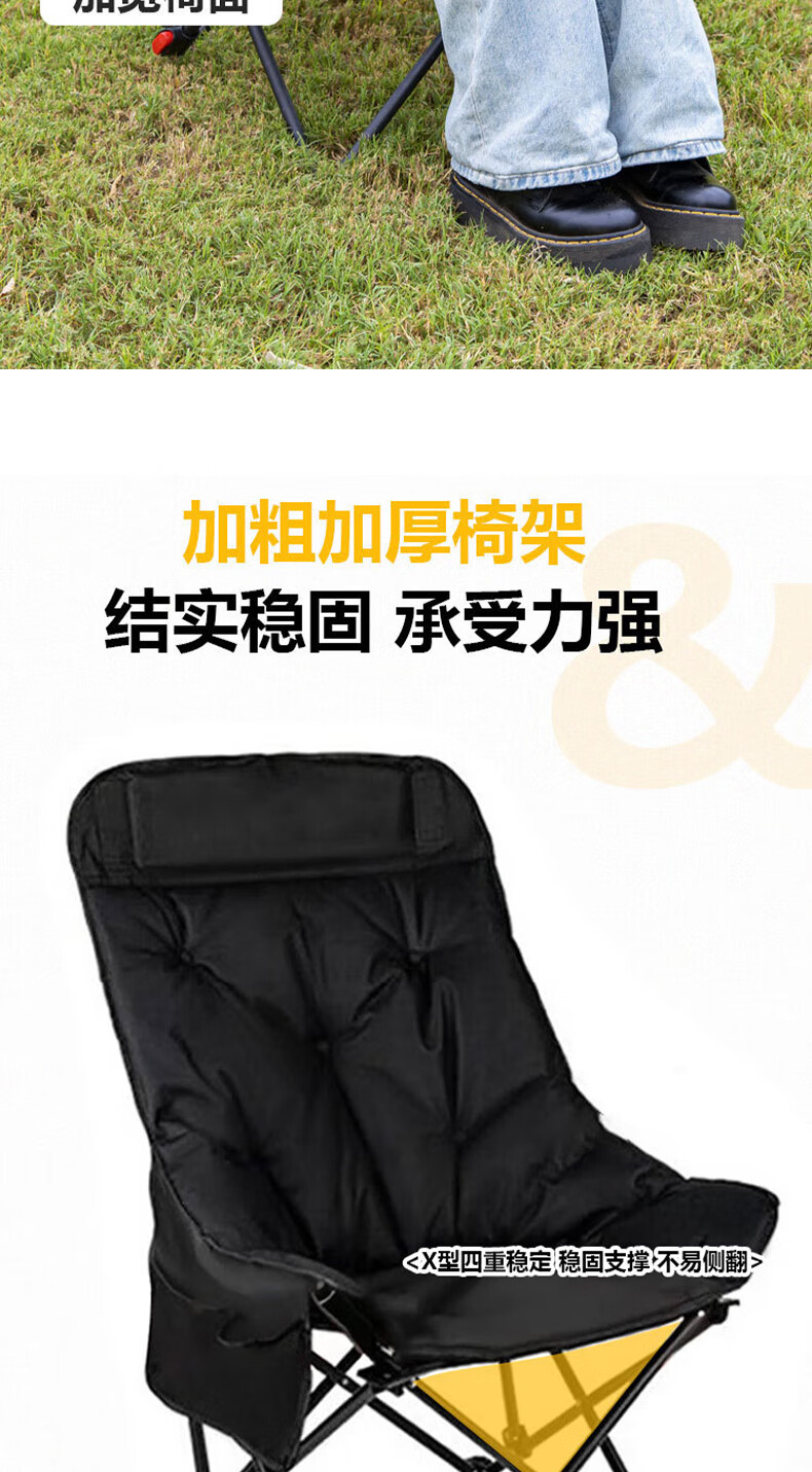 北岳户外折叠椅午休加高月亮露营椅便携钓鱼凳沙滩午睡躺椅野餐陪护椅 曜石黑-三挡可调节高背舒适