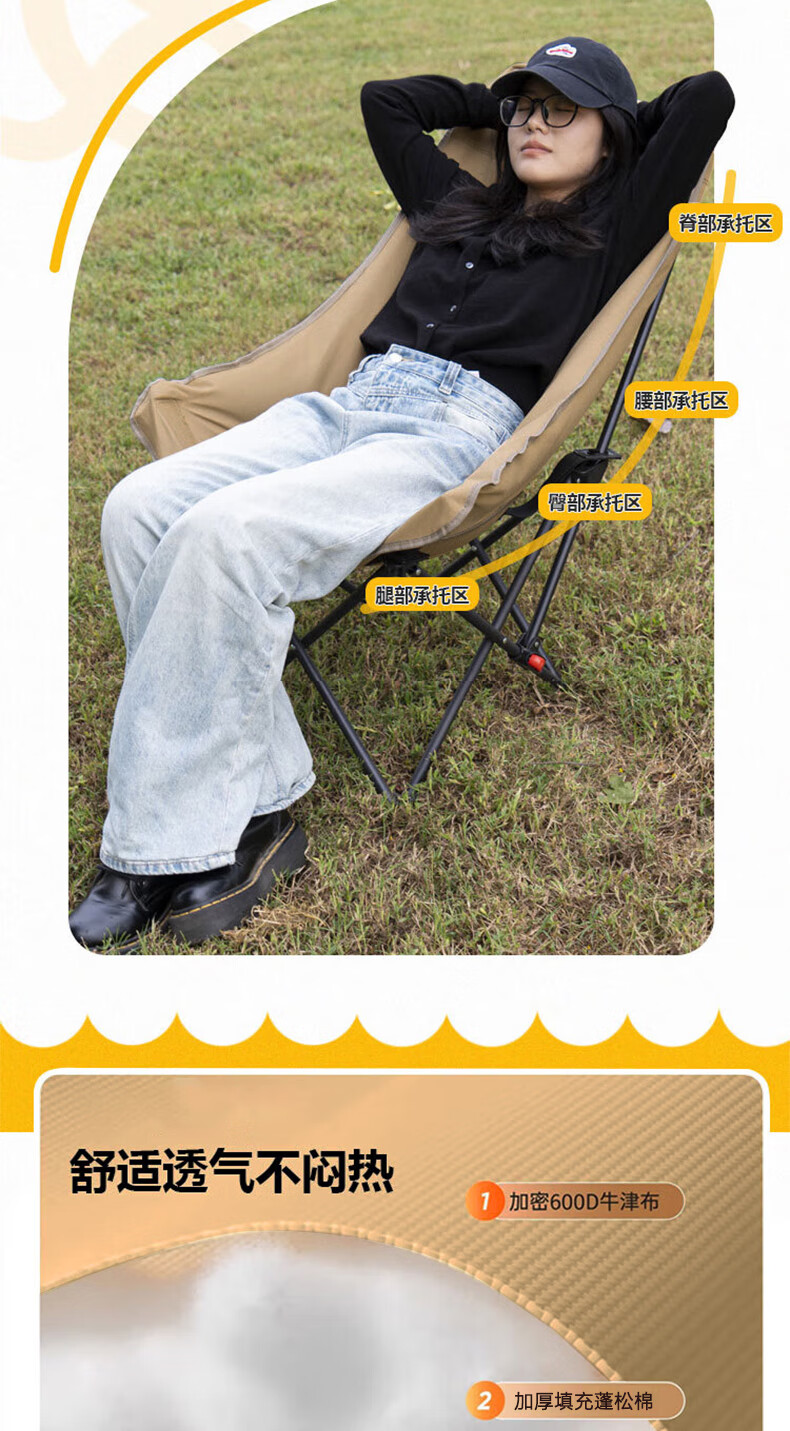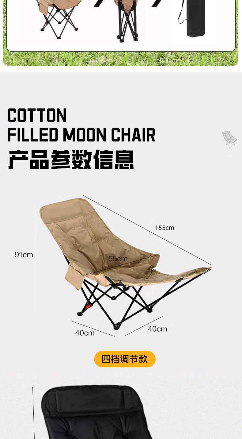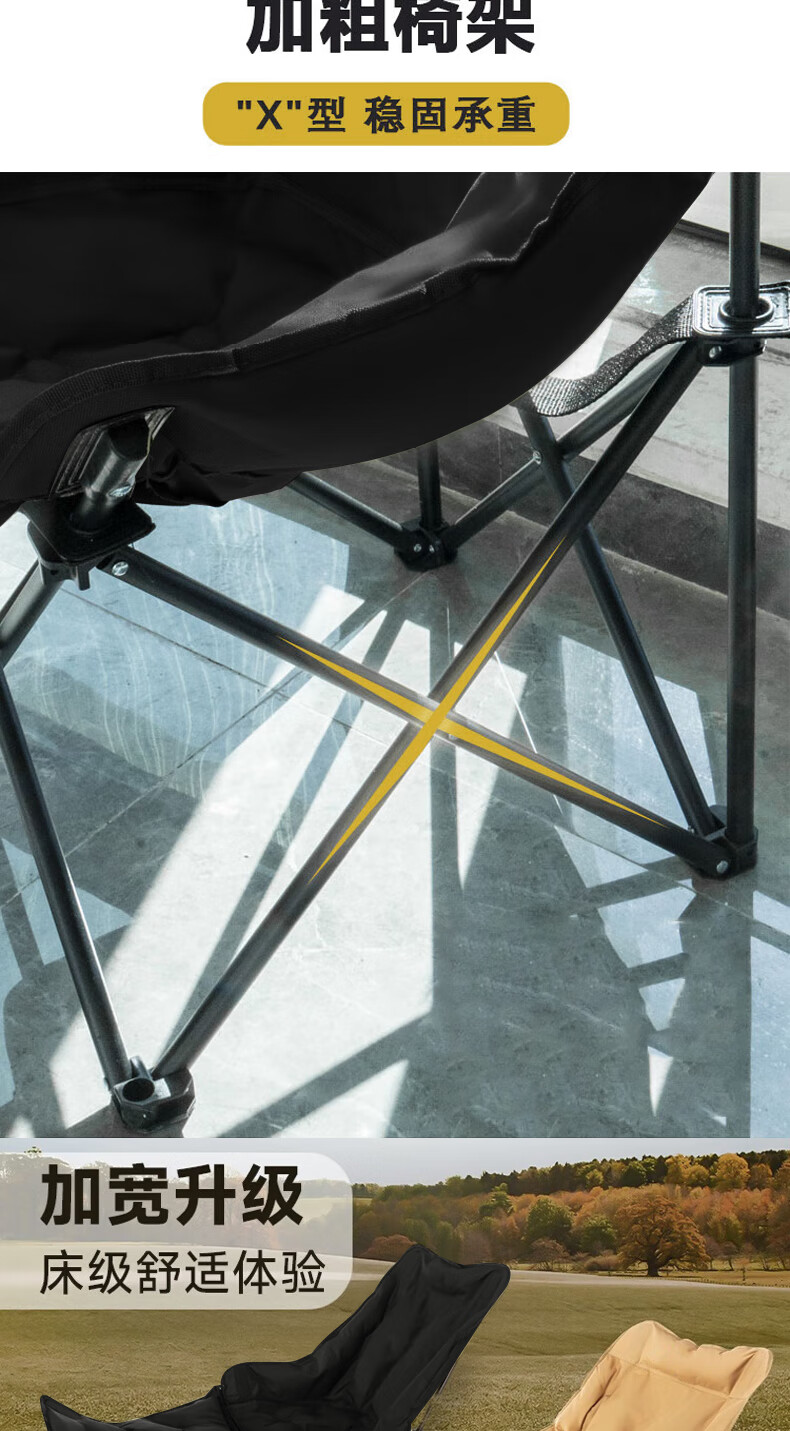 梵昇昱户外折叠椅高背月亮椅露营旅行装备可坐可躺午休沙滩椅便携野钓椅 卡其色加厚高背月亮椅【基础款】