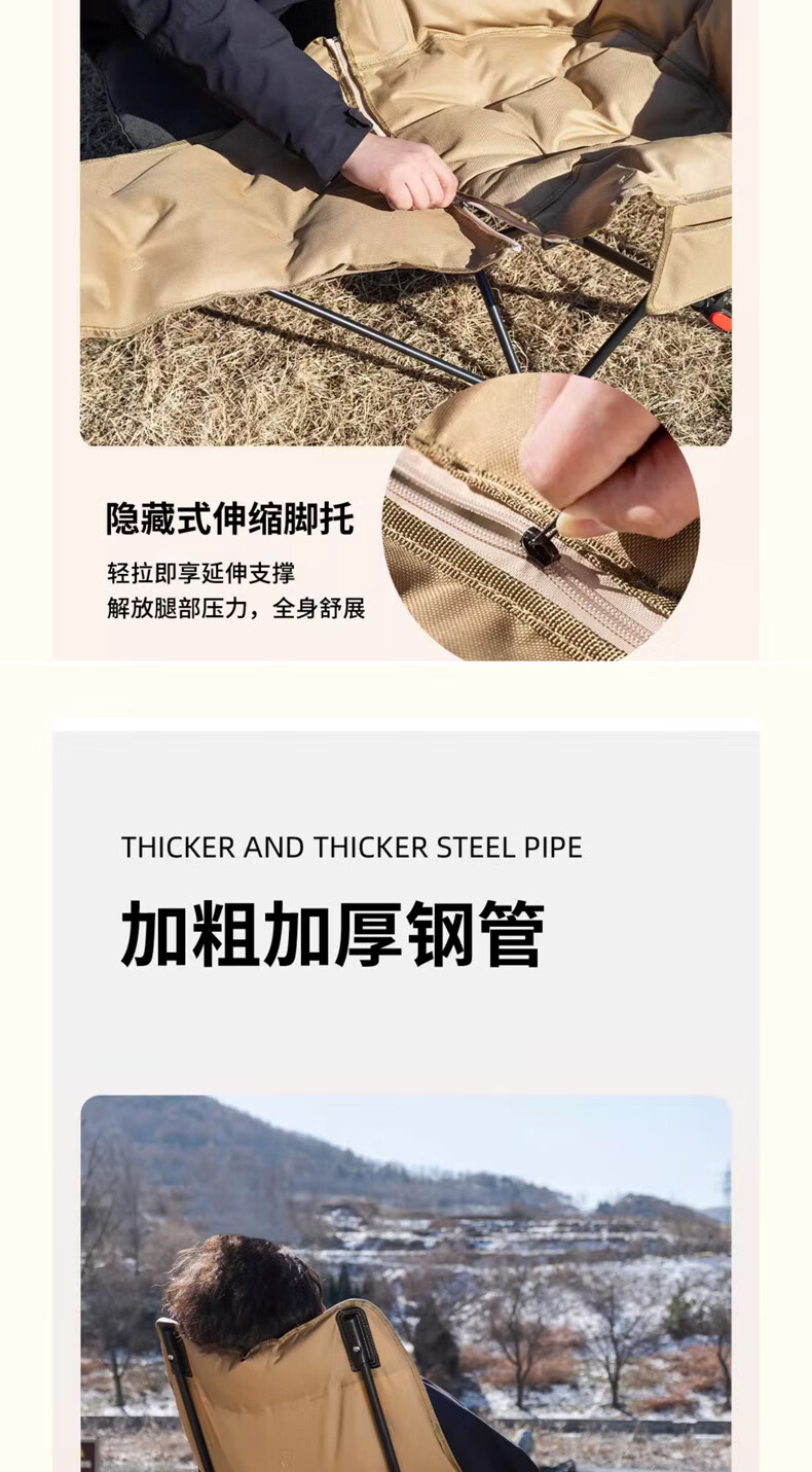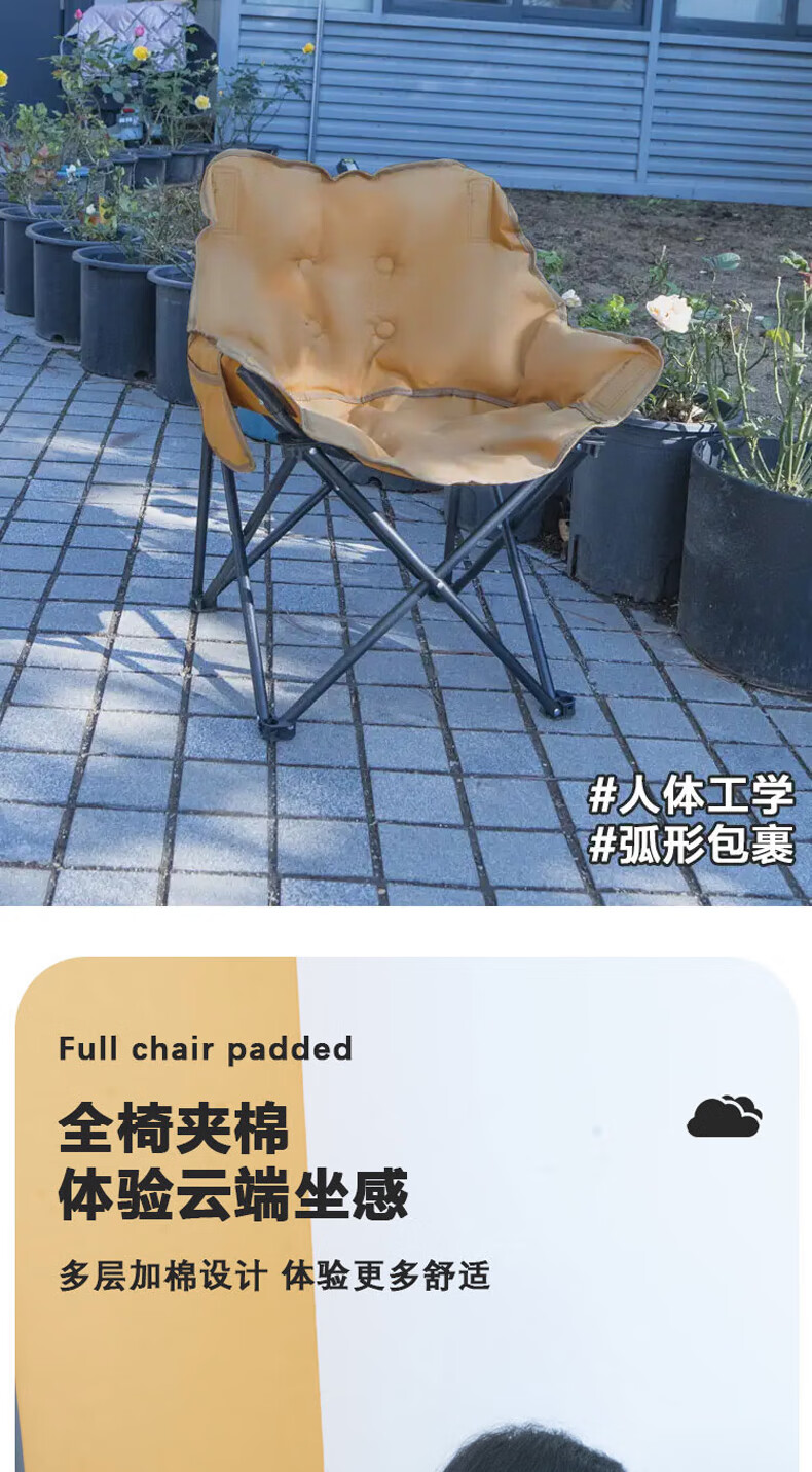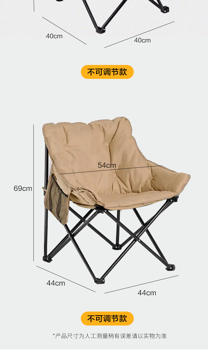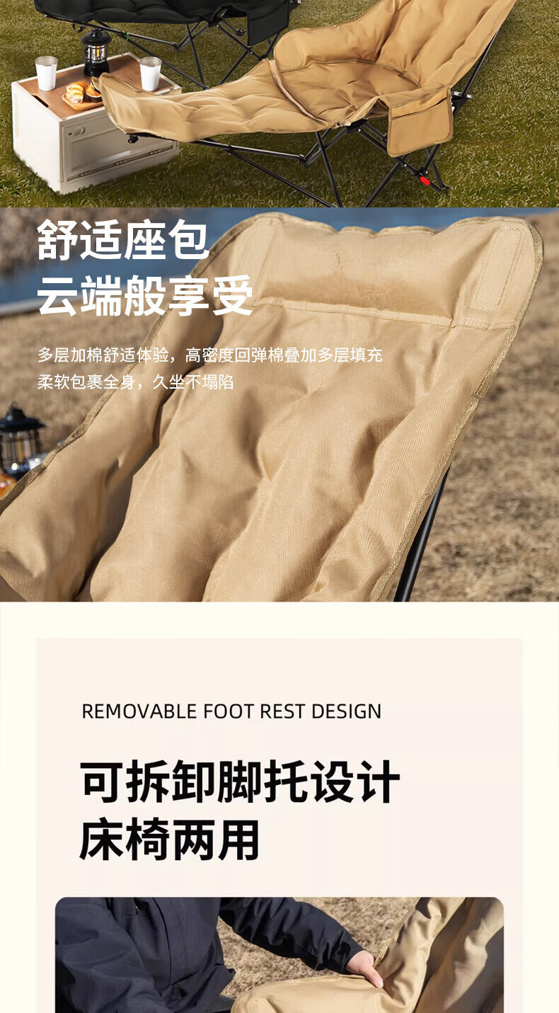 梵昇昱户外折叠椅高背月亮椅露营旅行装备可坐可躺午休沙滩椅便携野钓椅 卡其色加厚高背月亮椅【基础款】
