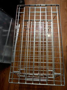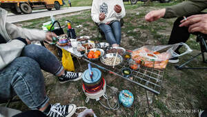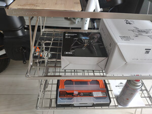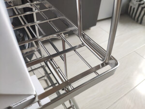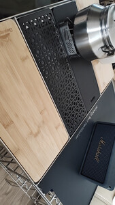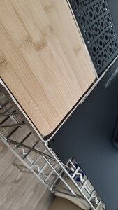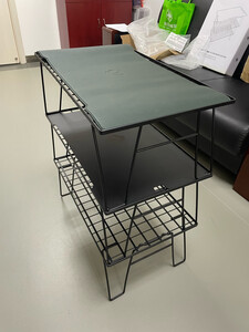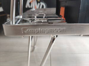 不锈钢面板不错设计很好,打开横挂就可以挂饭碗,收起来就不碍事,盖上203A不锈钢网格桌就吻合度不错,耐高温,值得购买的户外露营的置物架。