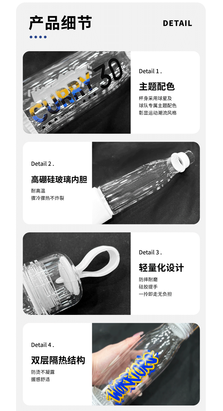 NBA官方勇士/湖人/凯尔特人/独行侠运动水壶夏季户外跑步骑行马拉松 金州勇士运动水壶