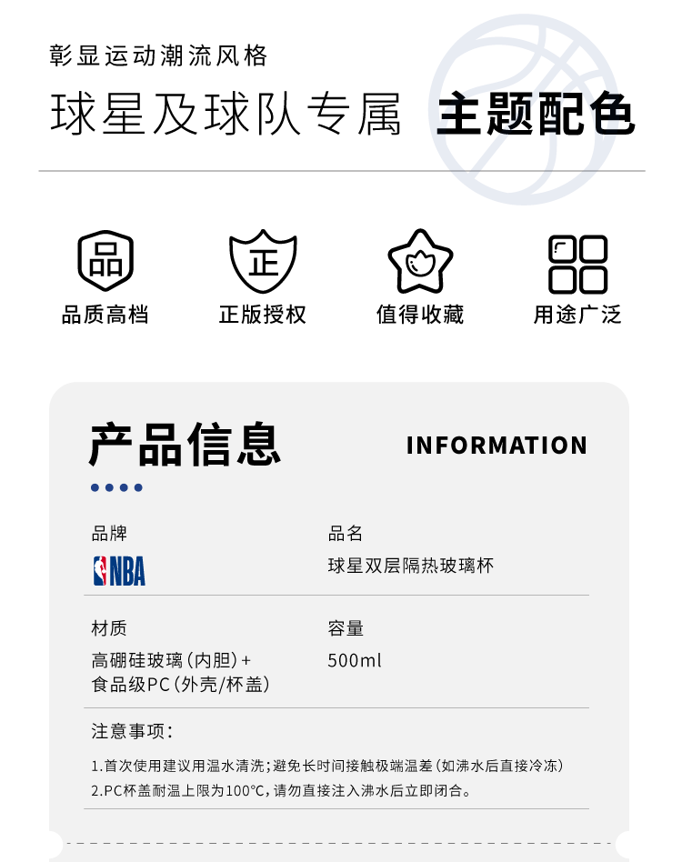 NBA球星双层隔热杯 库里/詹姆斯/东契奇 篮球运动周边 腾讯体育 詹姆斯