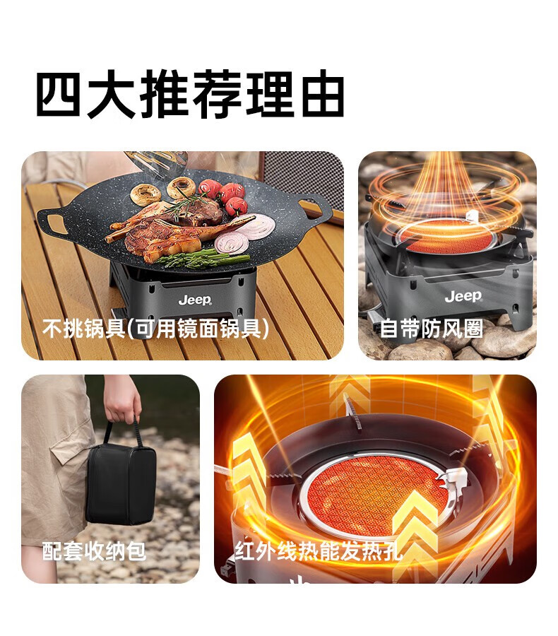 何佳功户外卡式炉户外炊具煮茶炉红外线防风分离式炉头露营 月光白节能方形炉+气罐*4