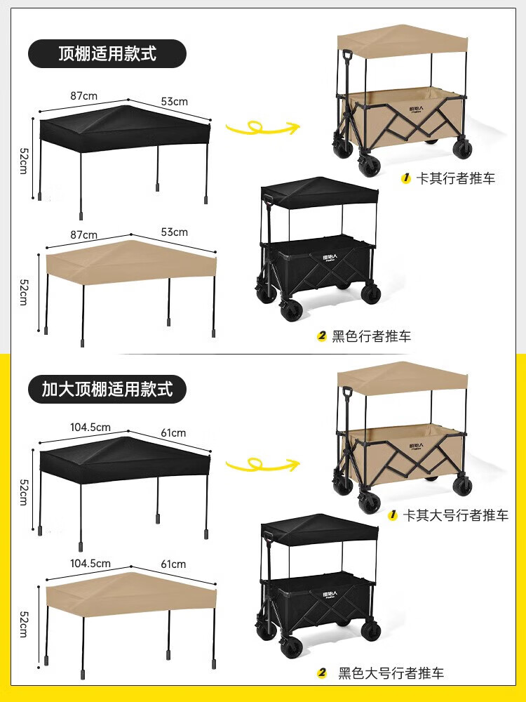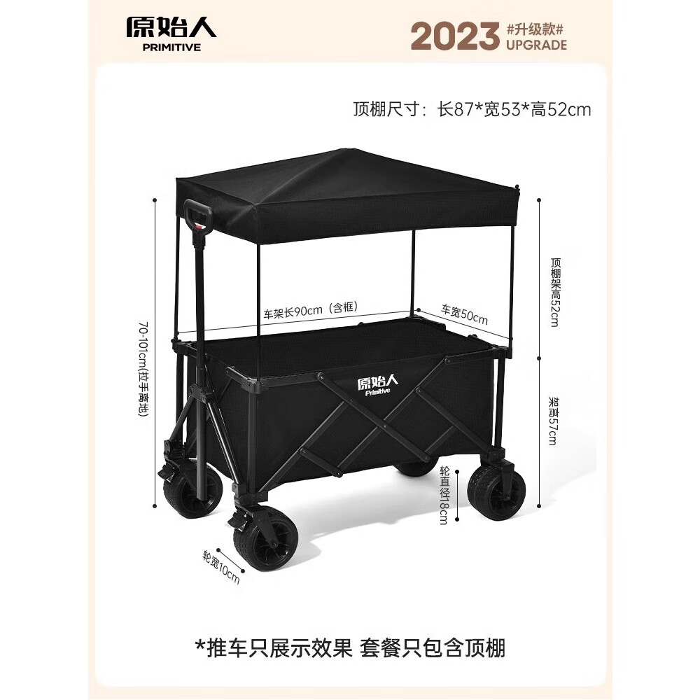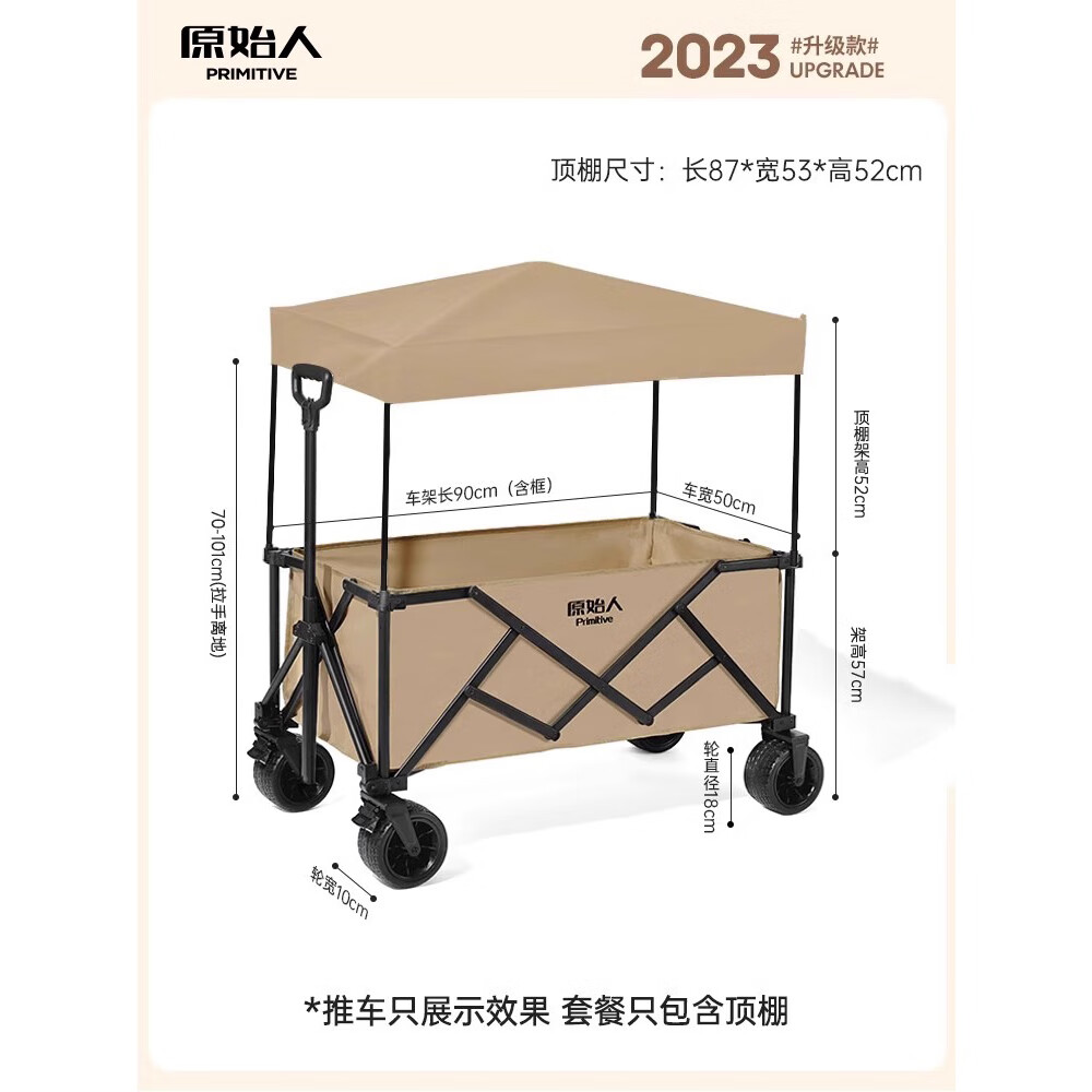 原始人露营推车户外营地拖车大可折叠手推野餐野营手拉车顶棚 卡其顶棚(只含顶棚推车只展示)