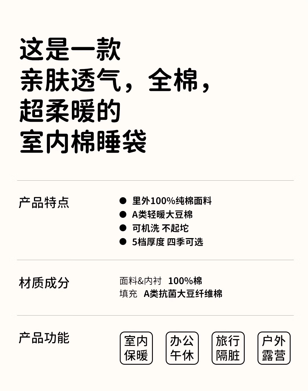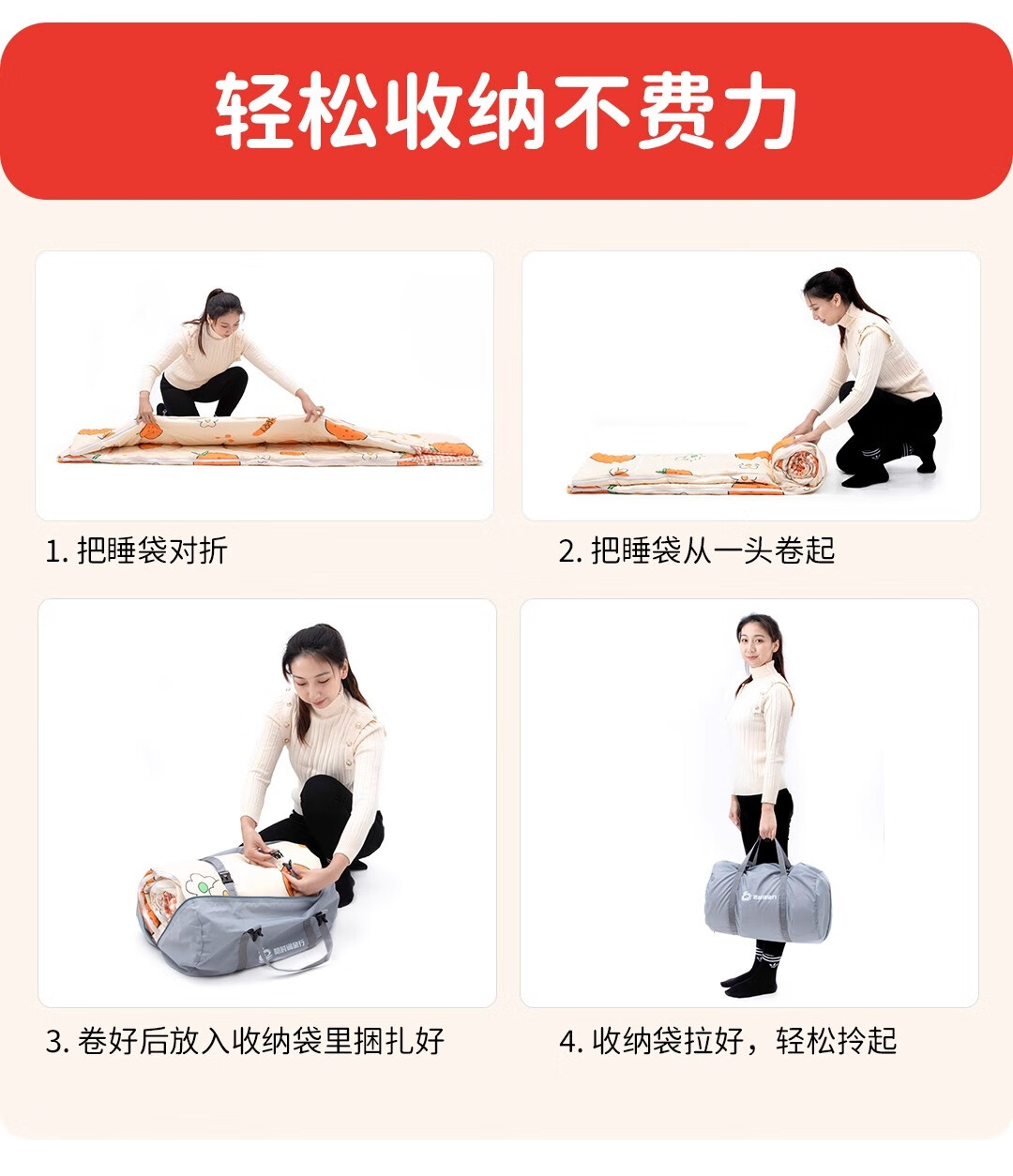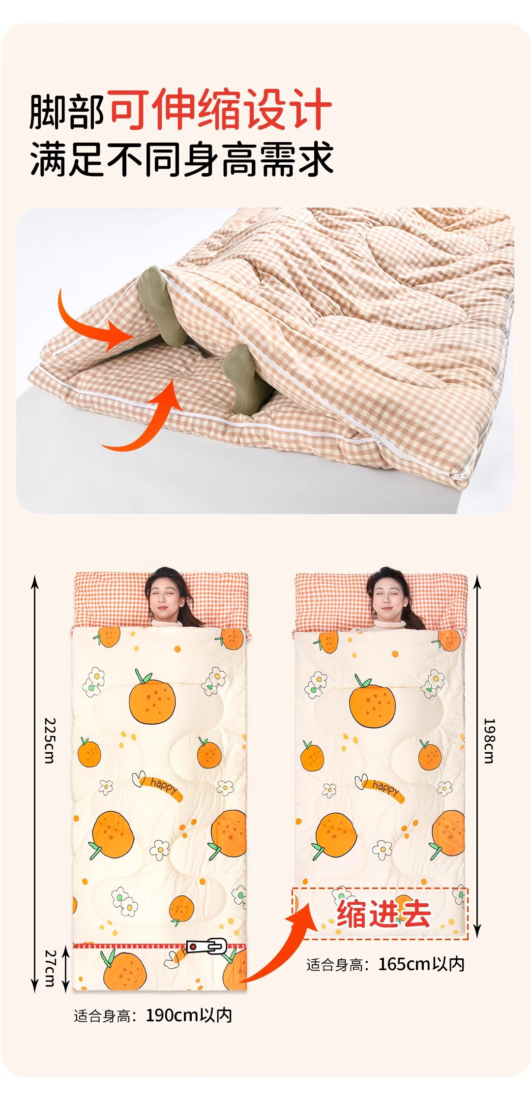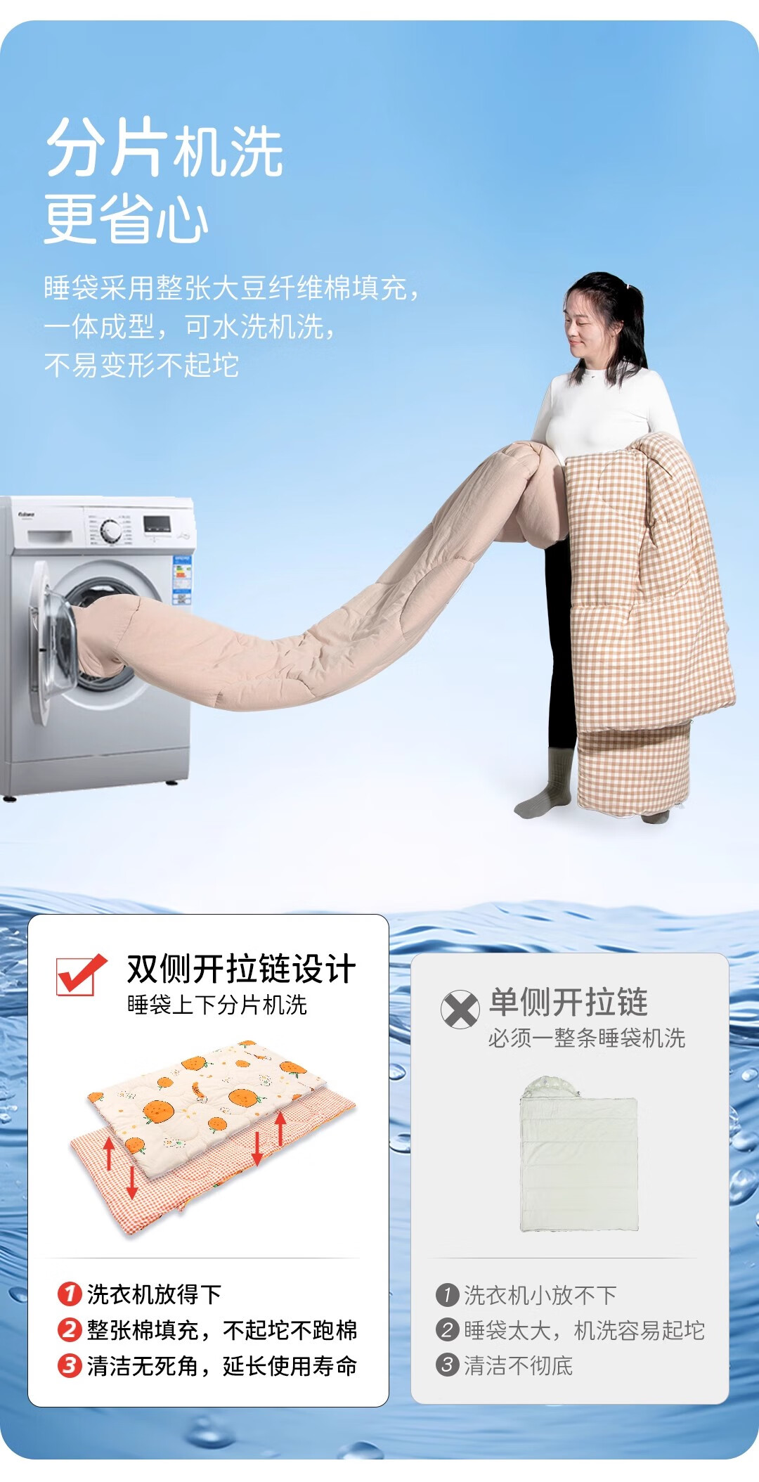 1米A类大豆棉脱胆睡袋成人四季通用护肩防踢保暖抗寒被子可拆内胆
