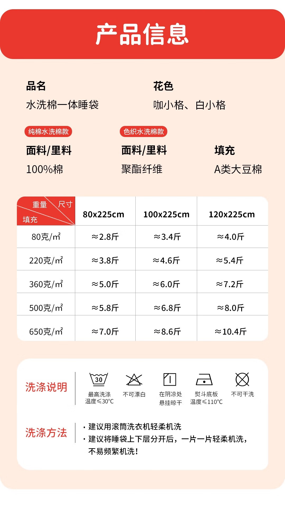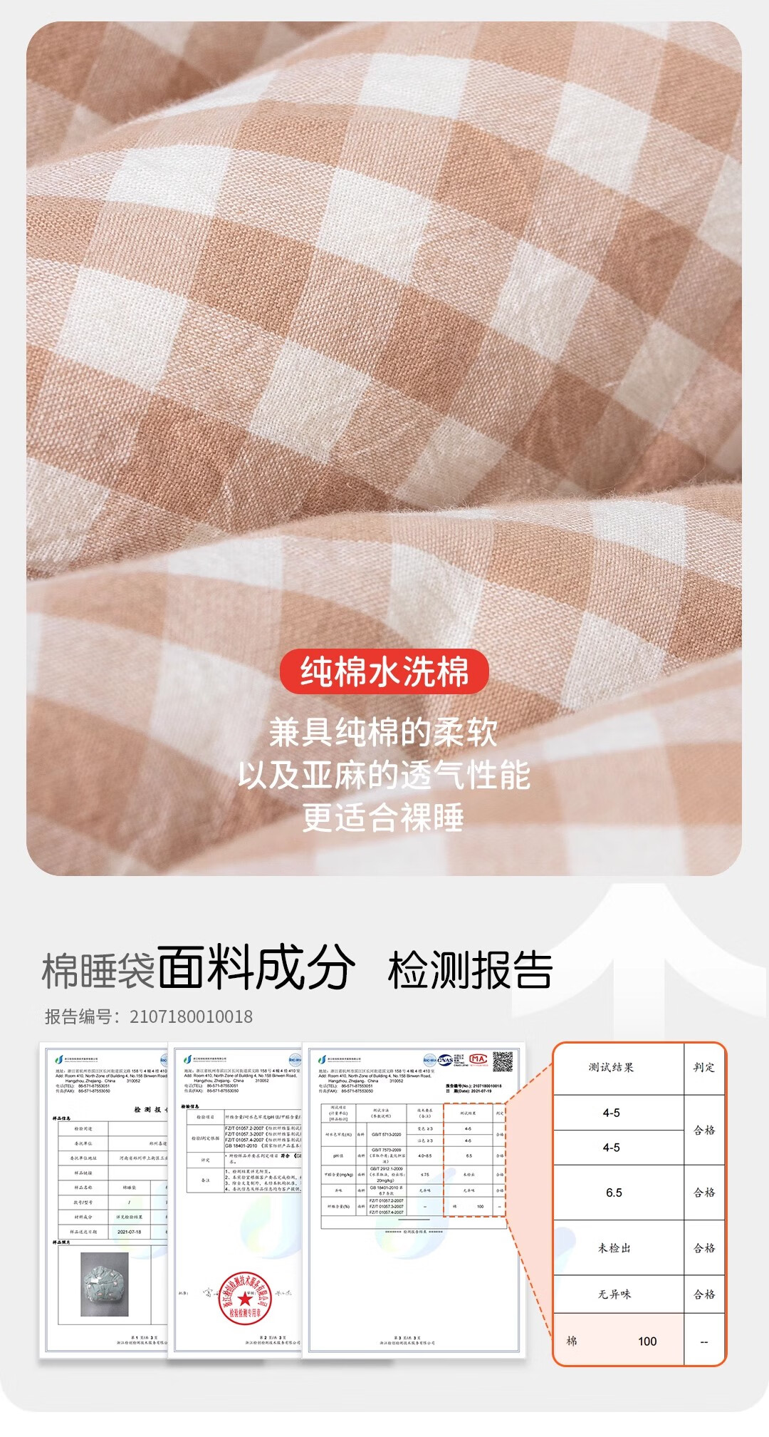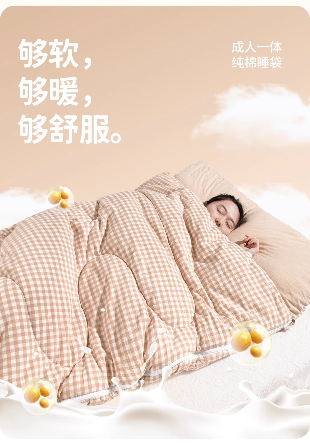 爱梦轩加宽加厚纯棉睡袋成人冬季防寒保暖大人家用办公室午休全棉被子 【纯棉款】80*225cm咖小格 夏季 2.8斤