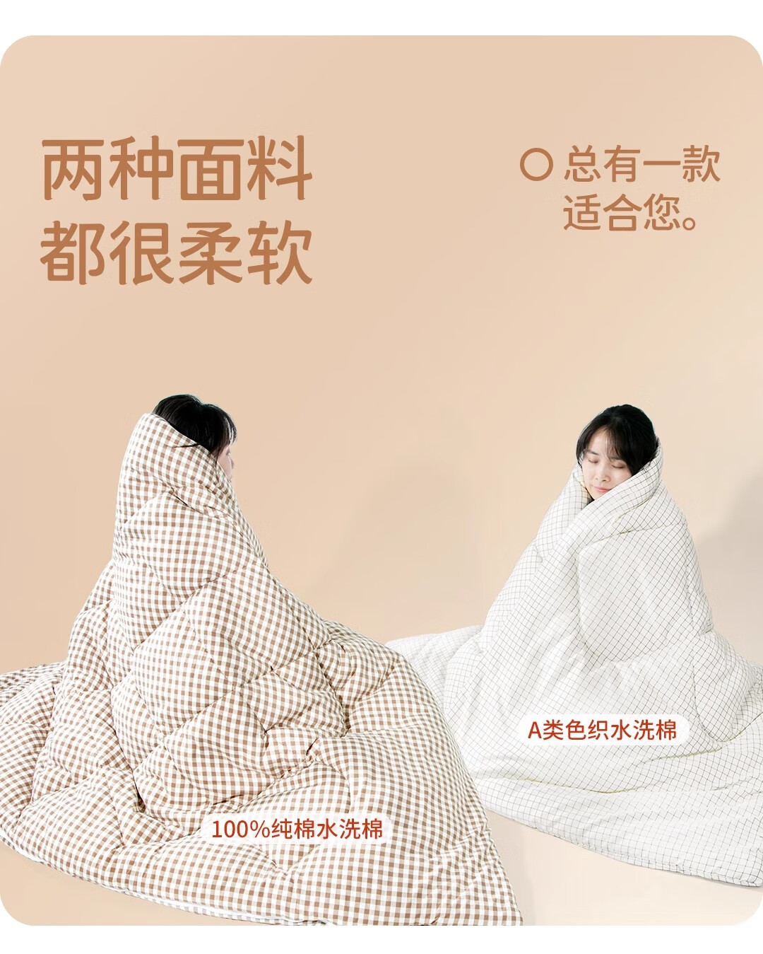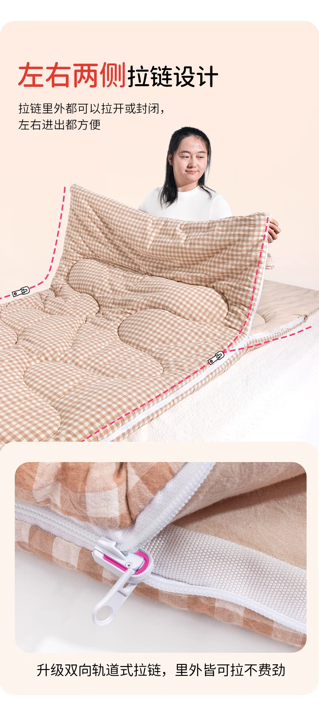 四季通用纯棉睡袋成人家用三层子母被子办公室午休加厚防寒保暖 白小格(0~32℃)四季款(约6.5斤)