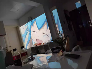 直接投的白墙。投影色彩丰富,音质不错,卧室使用很完美,在卧室里面用这个投影仪妥妥的神器,机器运行听不到噪音,这个很棒!操作非常简单,语音控制很方便!应该讲满足了我的所有要求,调焦也十分简单,基本没啥难度,按照客服的教程操作就可以了