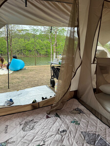 这个品牌的帐篷真的非常好。之前买过他们家的帐篷,质量非常好。每次出去露营,都能看到这个牌子的帐篷。因此,也买了一个这款帐篷,使用后发现非常满意。帐篷外面的材质厚实,内部通风,不用担心冷凝水问题。关于床垫,这次买了这个牌子的,虽然价格比某迪的贵,但躺上去感觉完全不同,支撑性好,不软,与家里床垫相似,推荐给朋友,孩子们也在上面睡得很舒服。
