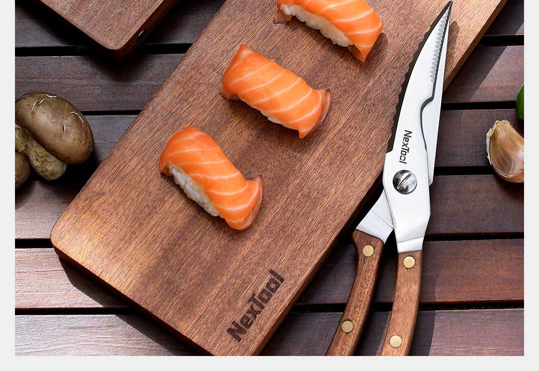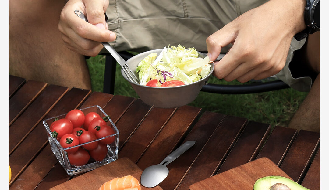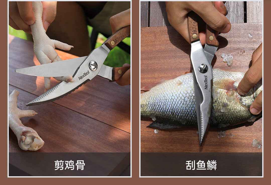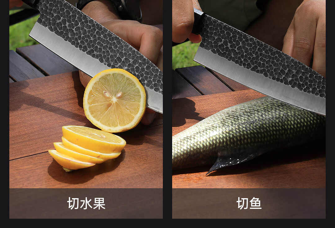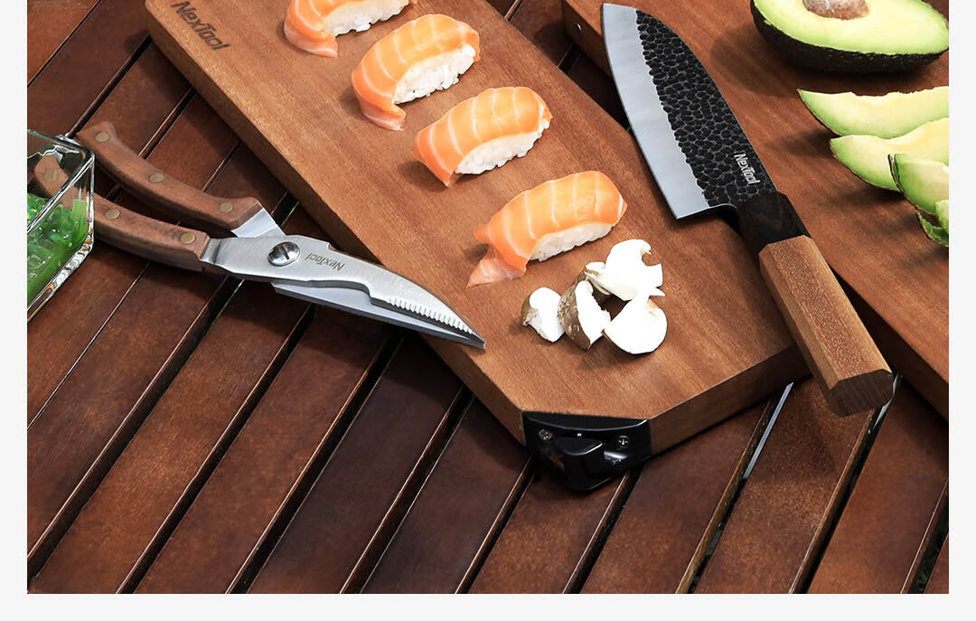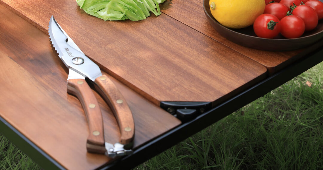 这套料理工具真是让人爱不释手!这木制手柄带有一丝复古气息,看起来非常上档次,握感也很舒适。锋利的刀片可以轻松处理各种食材,剪刀的设计也非常贴心,使用起来非常顺手。整体来说,这款料理工具不仅颜值高,而且实用性很强,绝对是露营厨房中的得力助手!