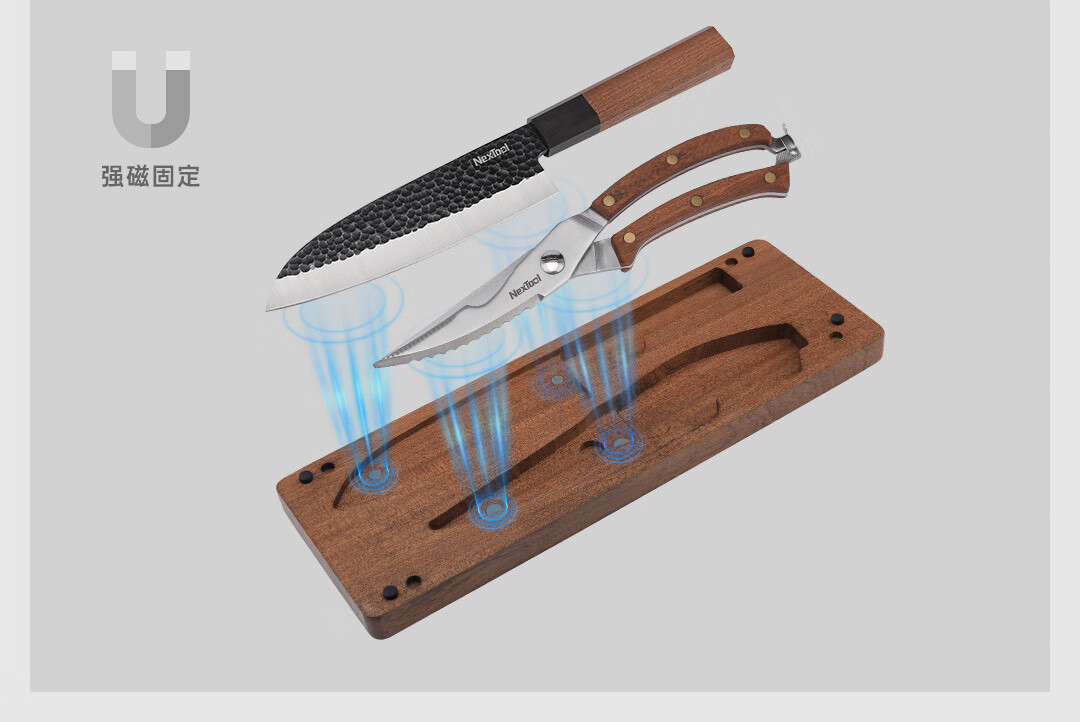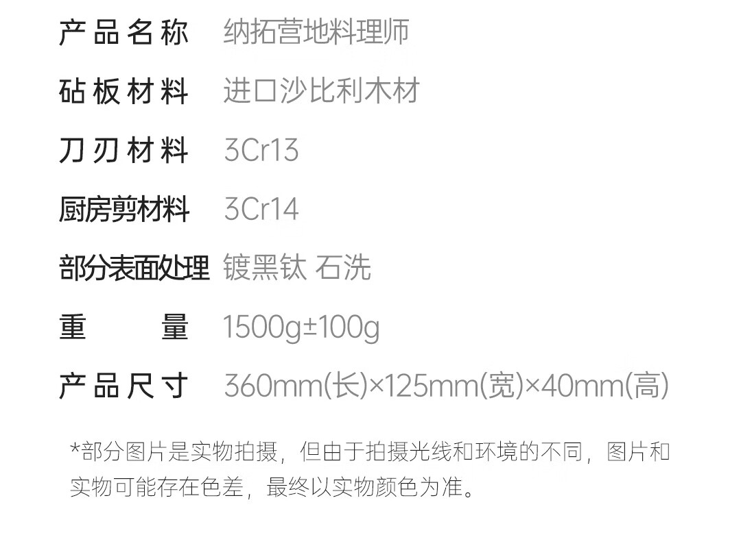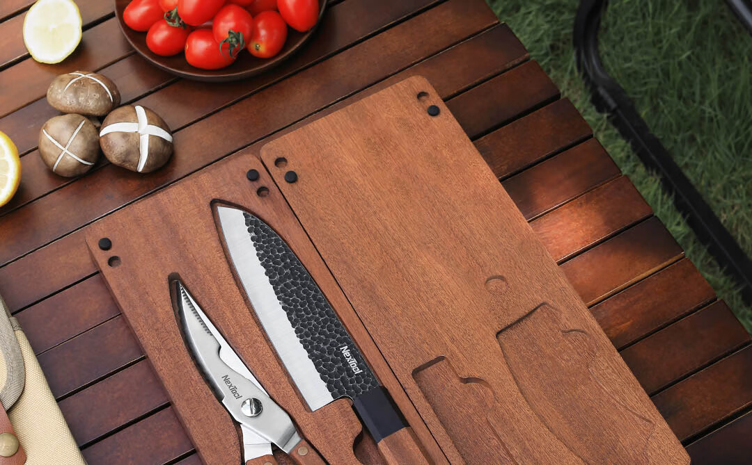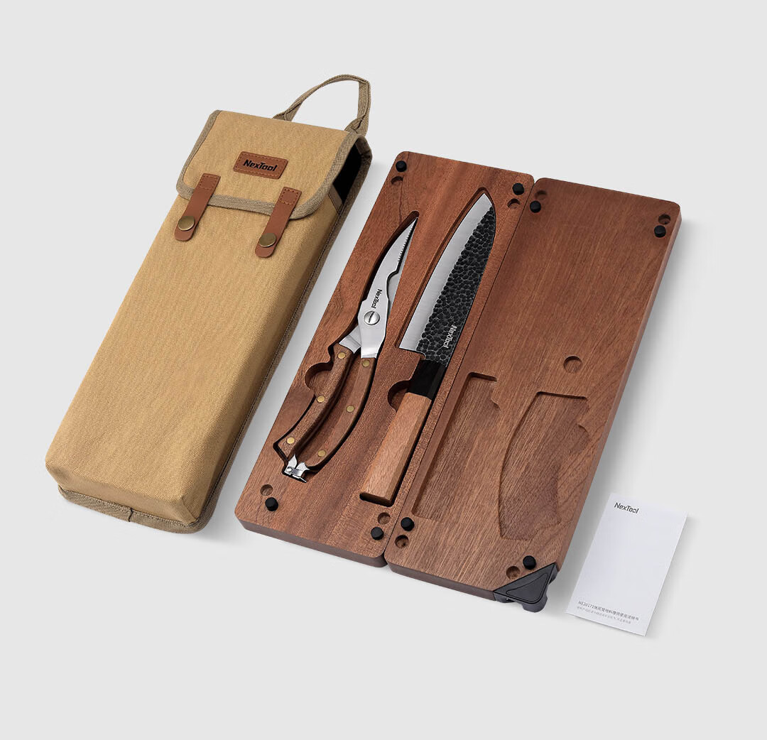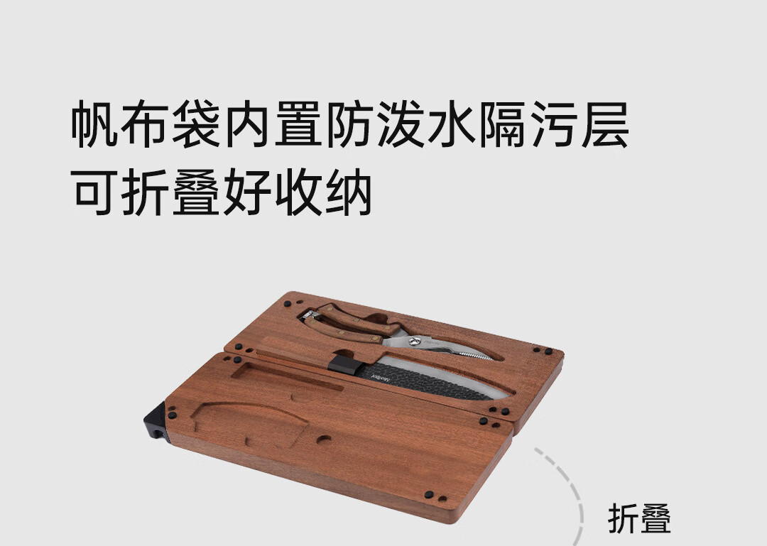 • 纳拓(NexTool) 营地料理师实木砧板刀剪组合 便携户外露营磁吸折叠砧板镀钛刀 营地料理师+纳膳多功能刀叉