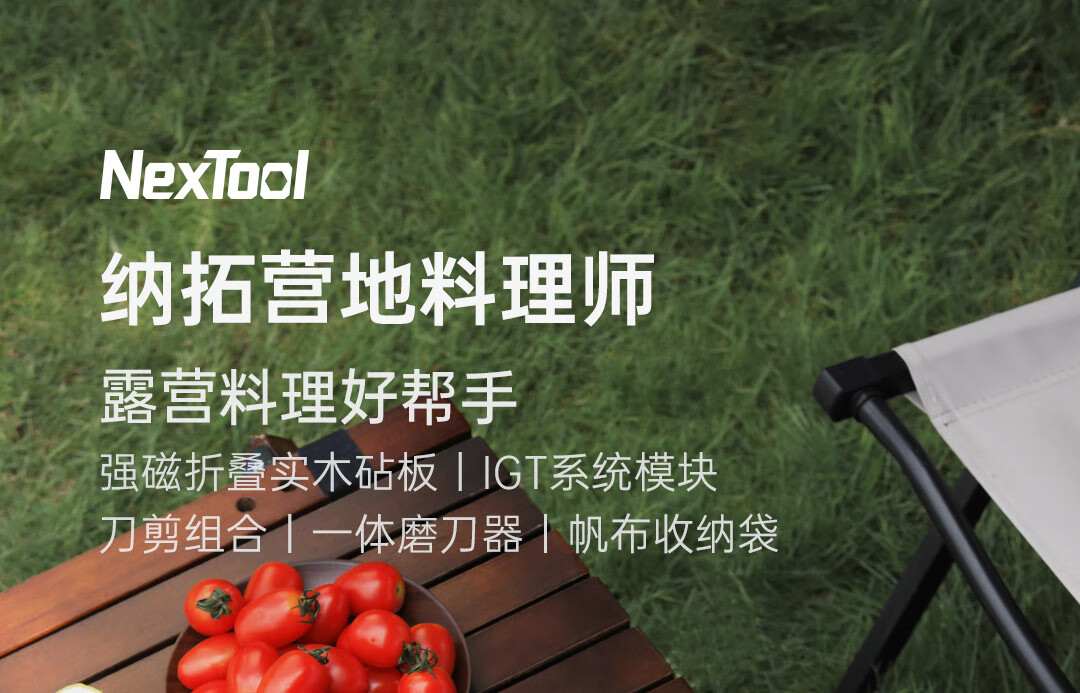 纳拓(NexTool) 营地料理师实木砧板刀剪组合 便携户外露营磁吸折叠砧板镀钛刀 营地料理师+纳膳多功能刀叉
