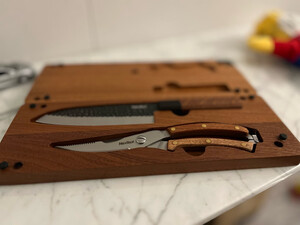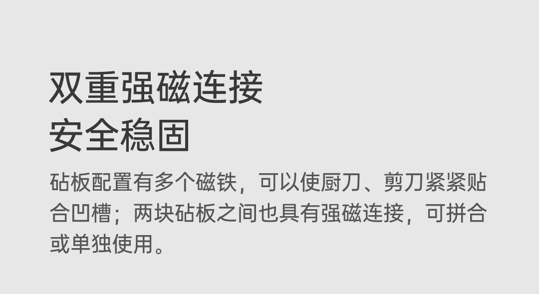 菜板质感很好,剪子和刀也有厚重感,菜板边缘还配有磨刀石;菜板可以分开使用,有磁吸功能,肉菜分离;还符合igt标准可以与相关桌子搭配使用,非常nice!