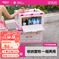 原始人芭比露营折叠收纳箱带桌板户外装备野餐盒便携野营折叠桌子 芭比白月光50L