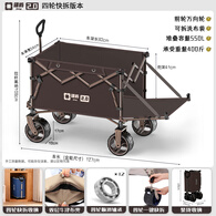 疆屿2025新款巨型露营车户外折叠聚拢摆摊野餐旅行快递小推车儿童可躺 咖啡【聚拢旅途者】四轮快拆 全车10静音轴承