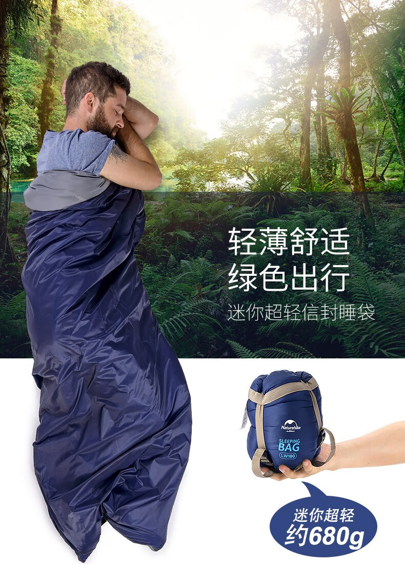 Naturehike挪客户外迷你轻量化睡袋薄款便携隔脏露营超轻便野外成人春天夏季 小号暗影蓝