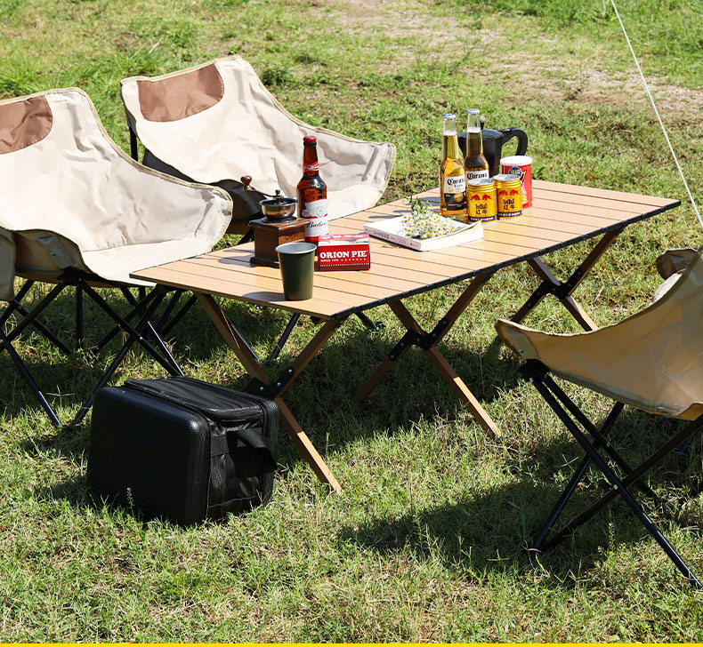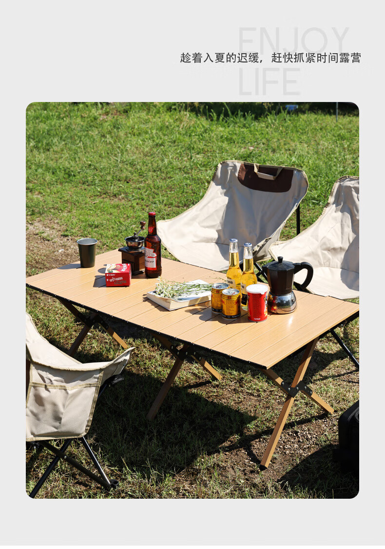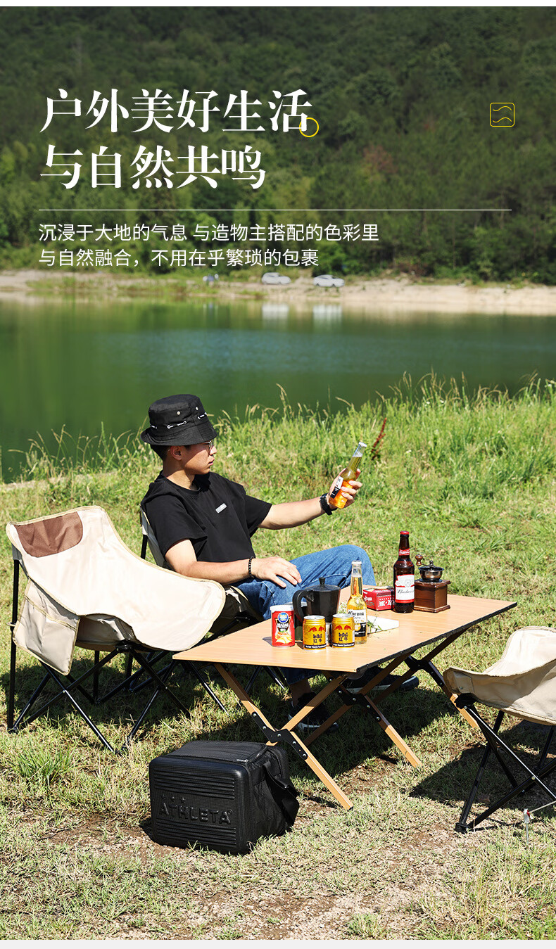 桌子的高度设计十分合理,搭配标准尺寸的露营椅,坐着拿东西非常方便