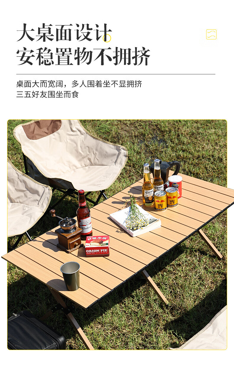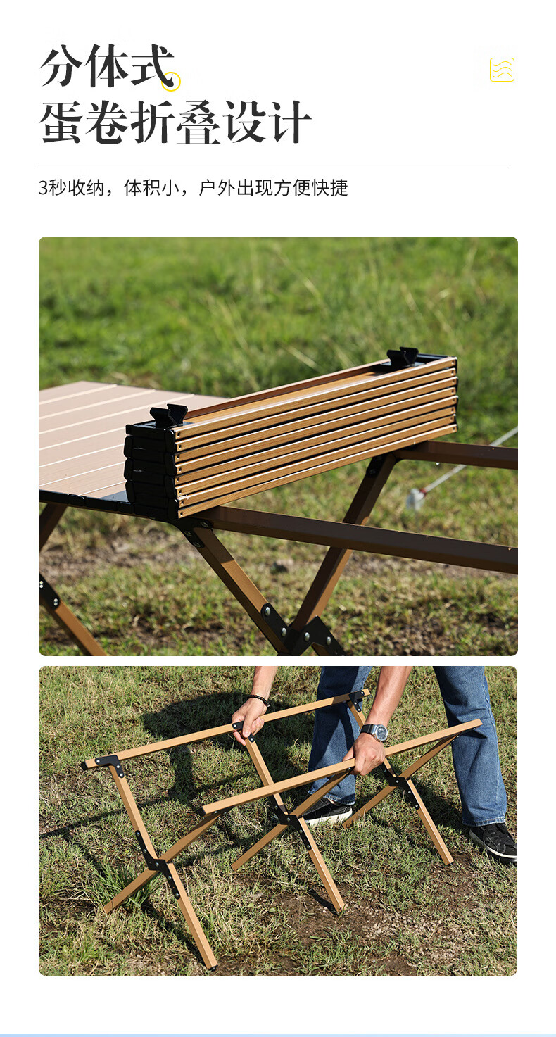 梵昇昱户外折叠桌子蛋卷桌 户外桌椅露营桌椅野餐装备 便携式野炊长桌 【稳固长桌】蛋卷桌95cm卡其色