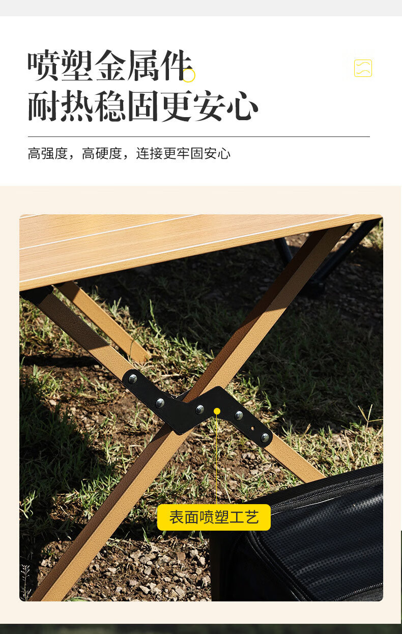 瑜品佳 户外折叠桌 120CM碳钢加固蛋卷桌旅游桌野餐烧烤摆摊夜市便携桌 碳钢胡桃【120*60*45cm】