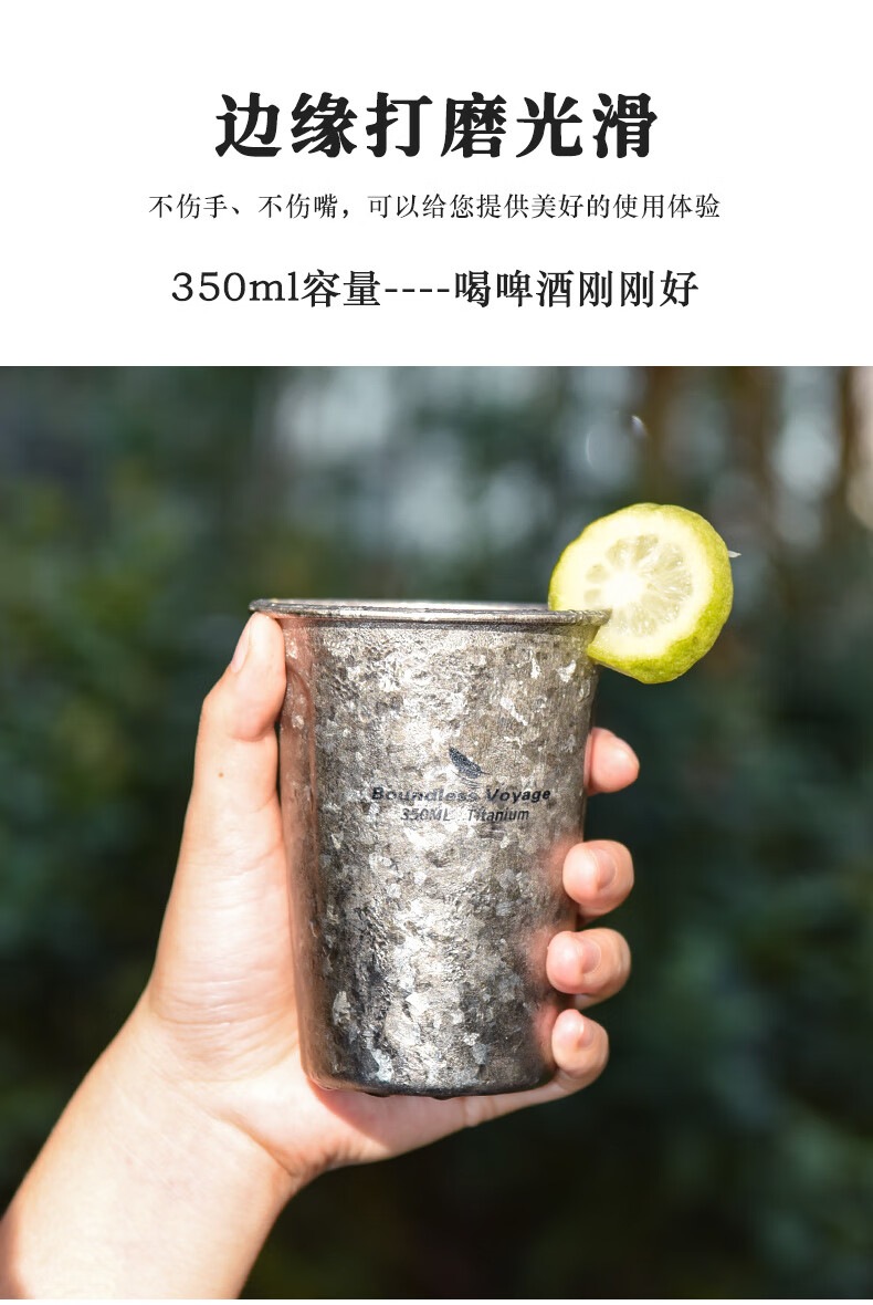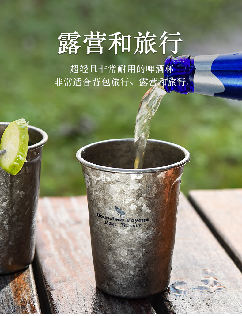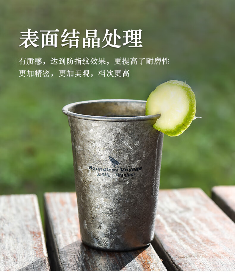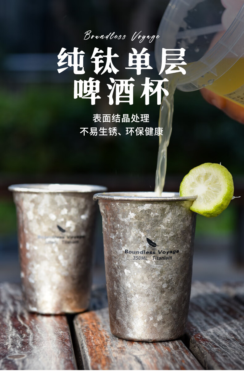 必唯(BOUNDLESS VOYAGE) 必唯纯钛户外啤酒杯350ml便携野营水杯露营饮料杯单层结晶 Ti3087D 350ML结晶款