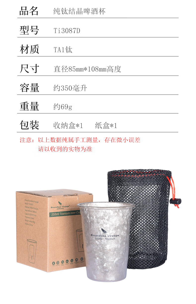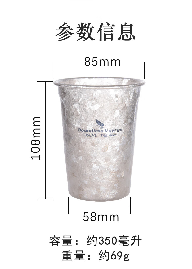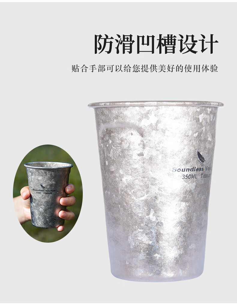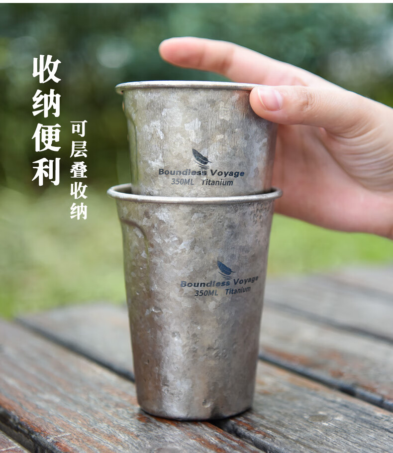 必唯(BOUNDLESS VOYAGE) 必唯纯钛户外啤酒杯350ml便携野营水杯露营饮料杯单层结晶 Ti3087D 350ML结晶款