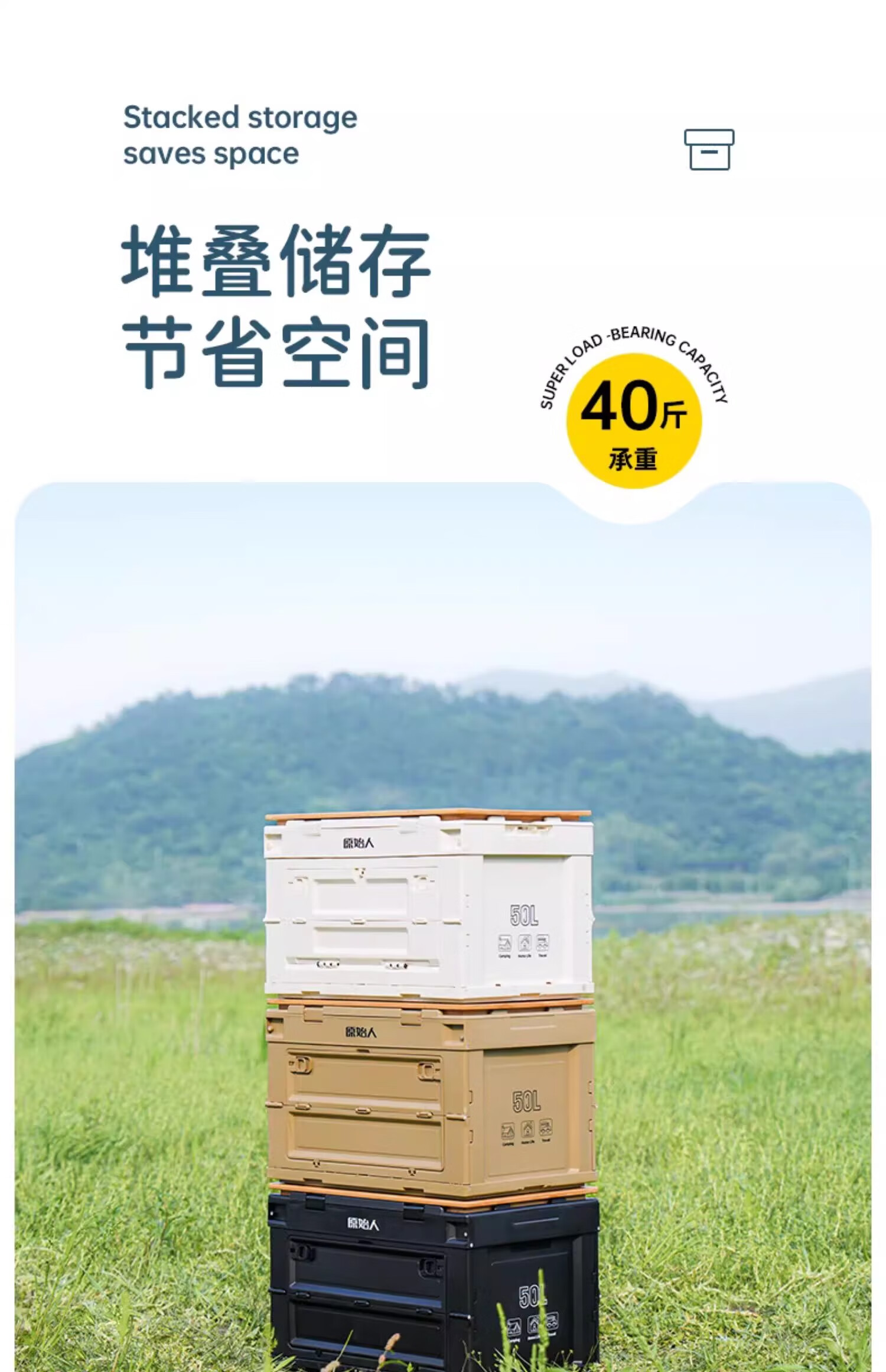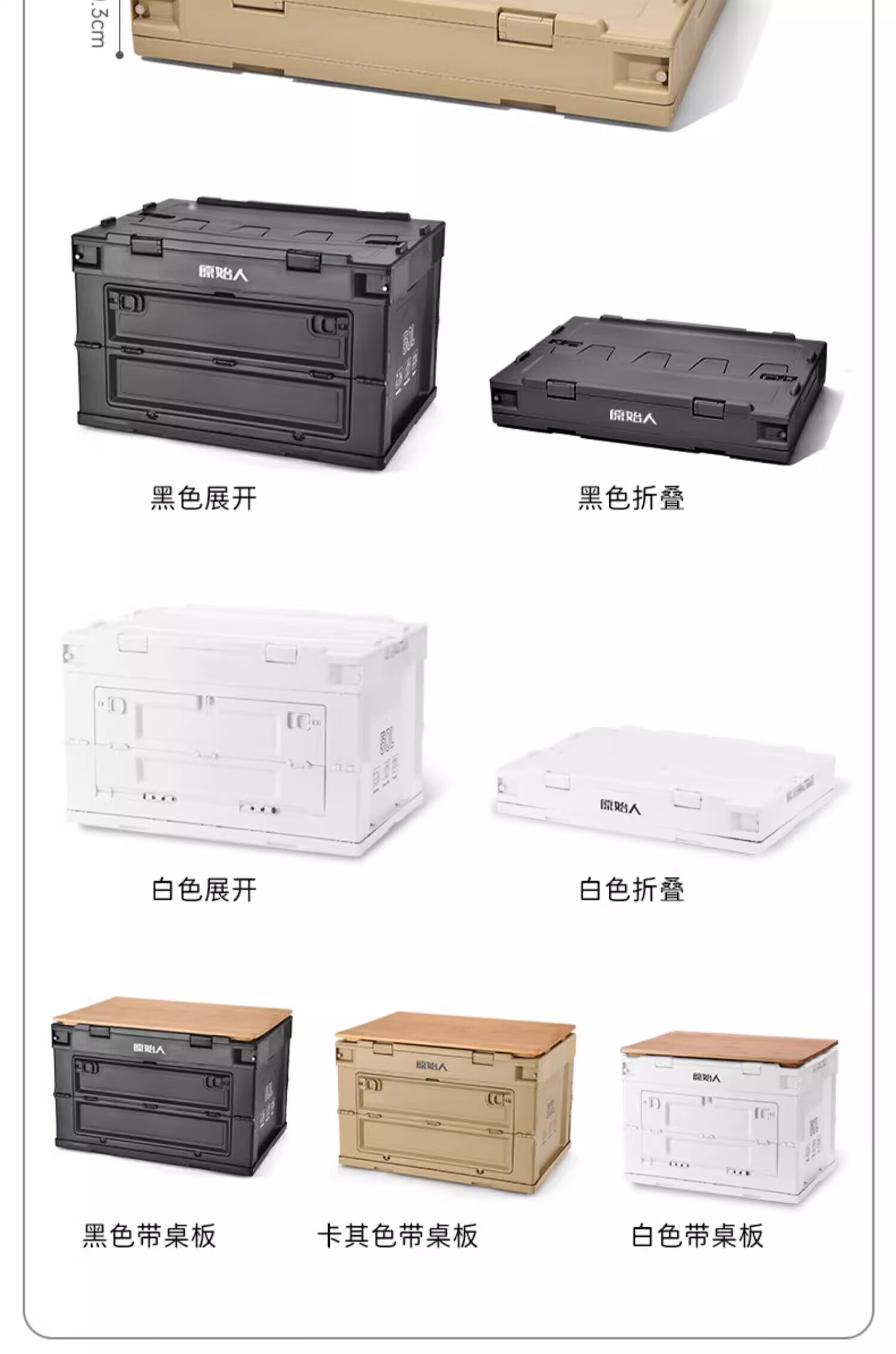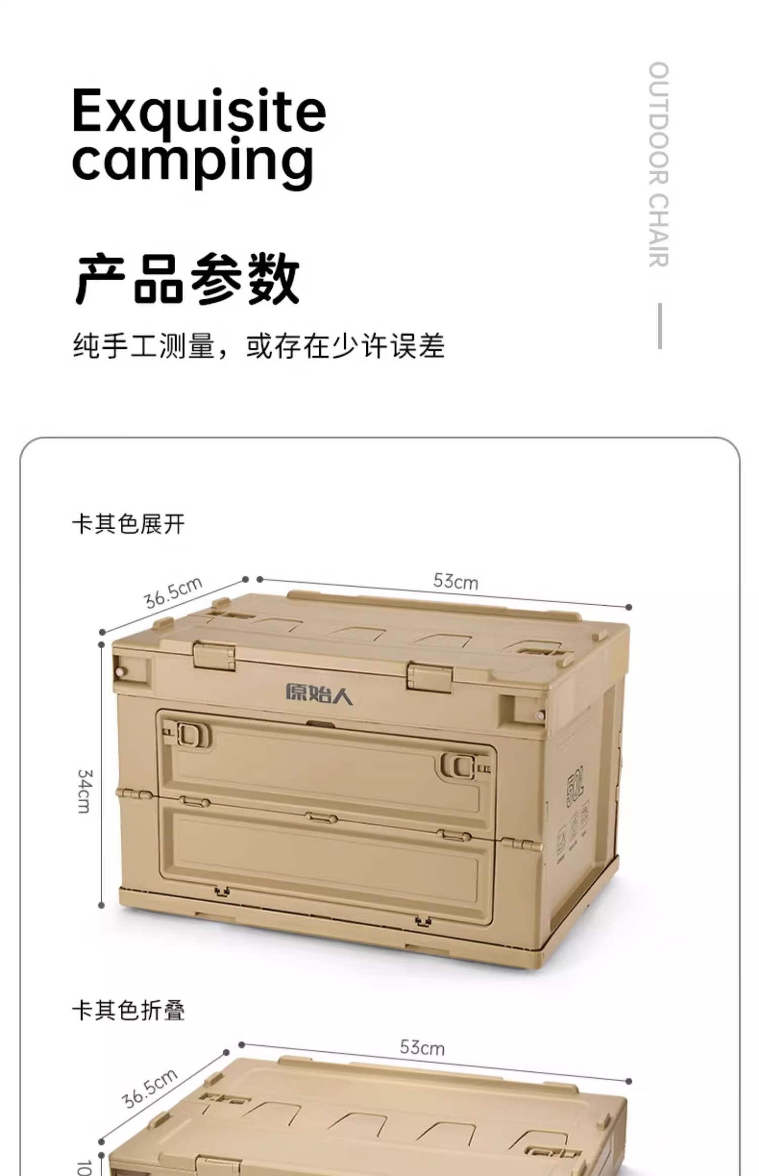 原始人户外露营折叠箱收纳储物置物箱子整理野营用品便携式折叠桌 【大号】50L