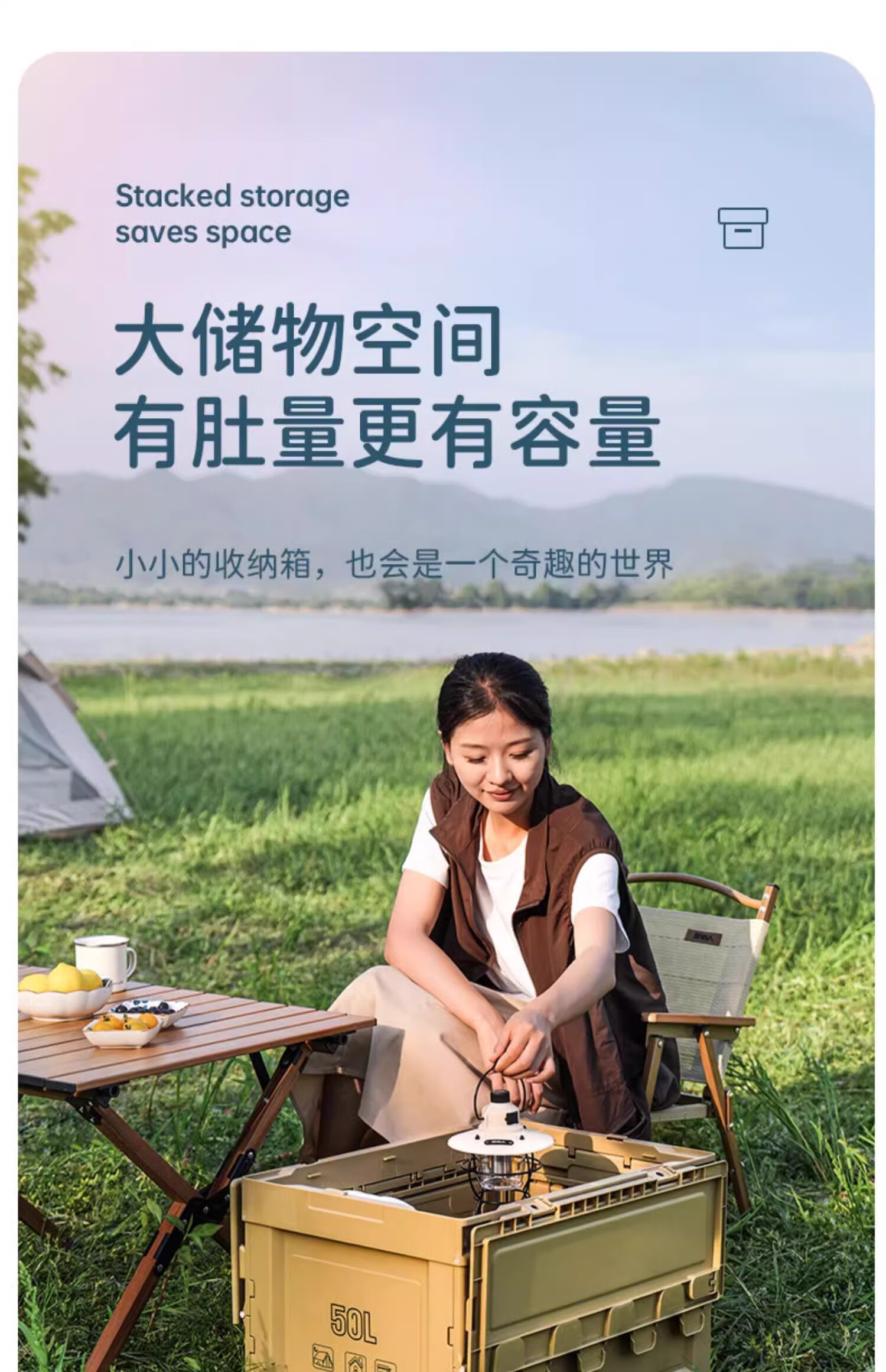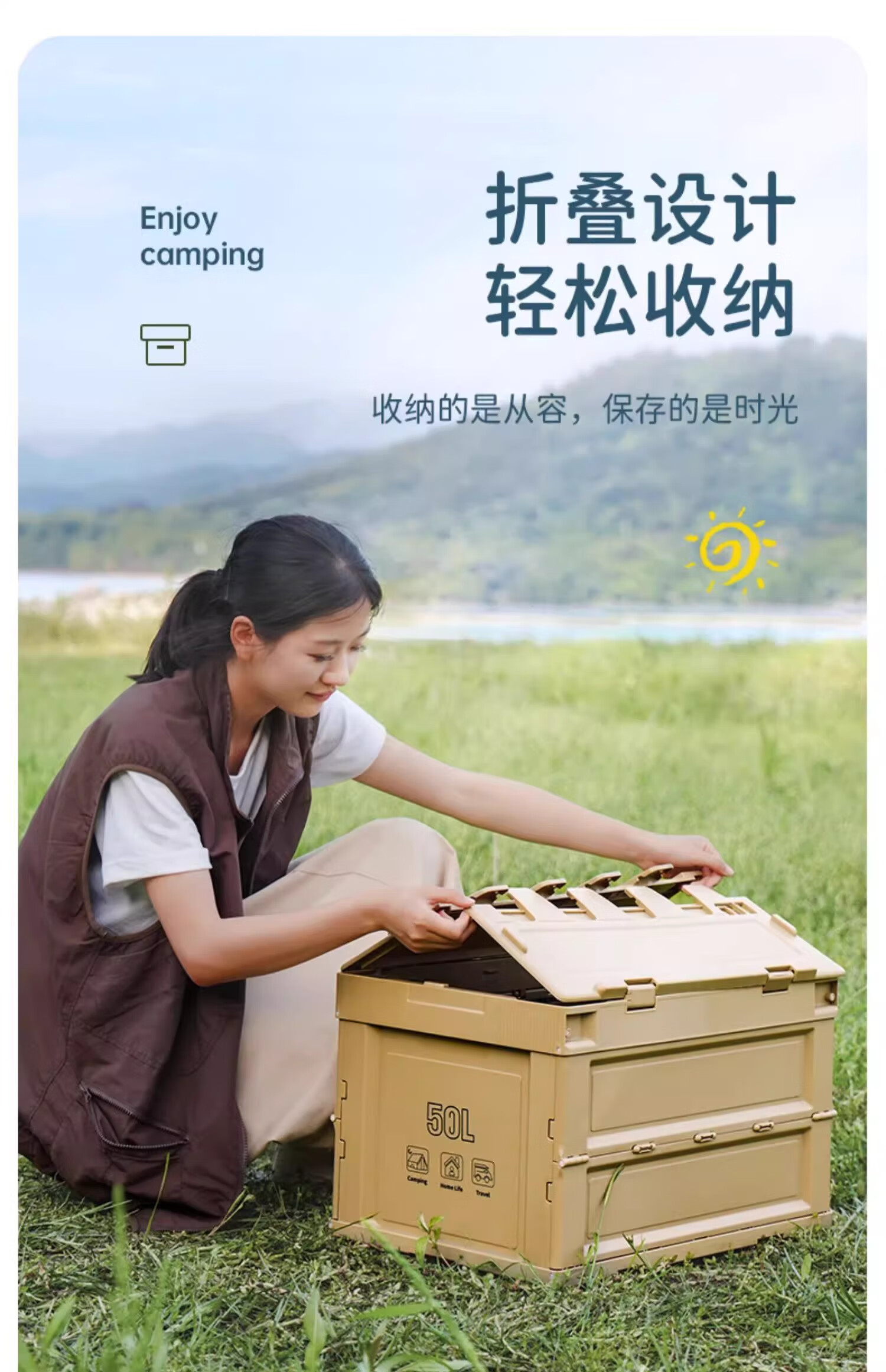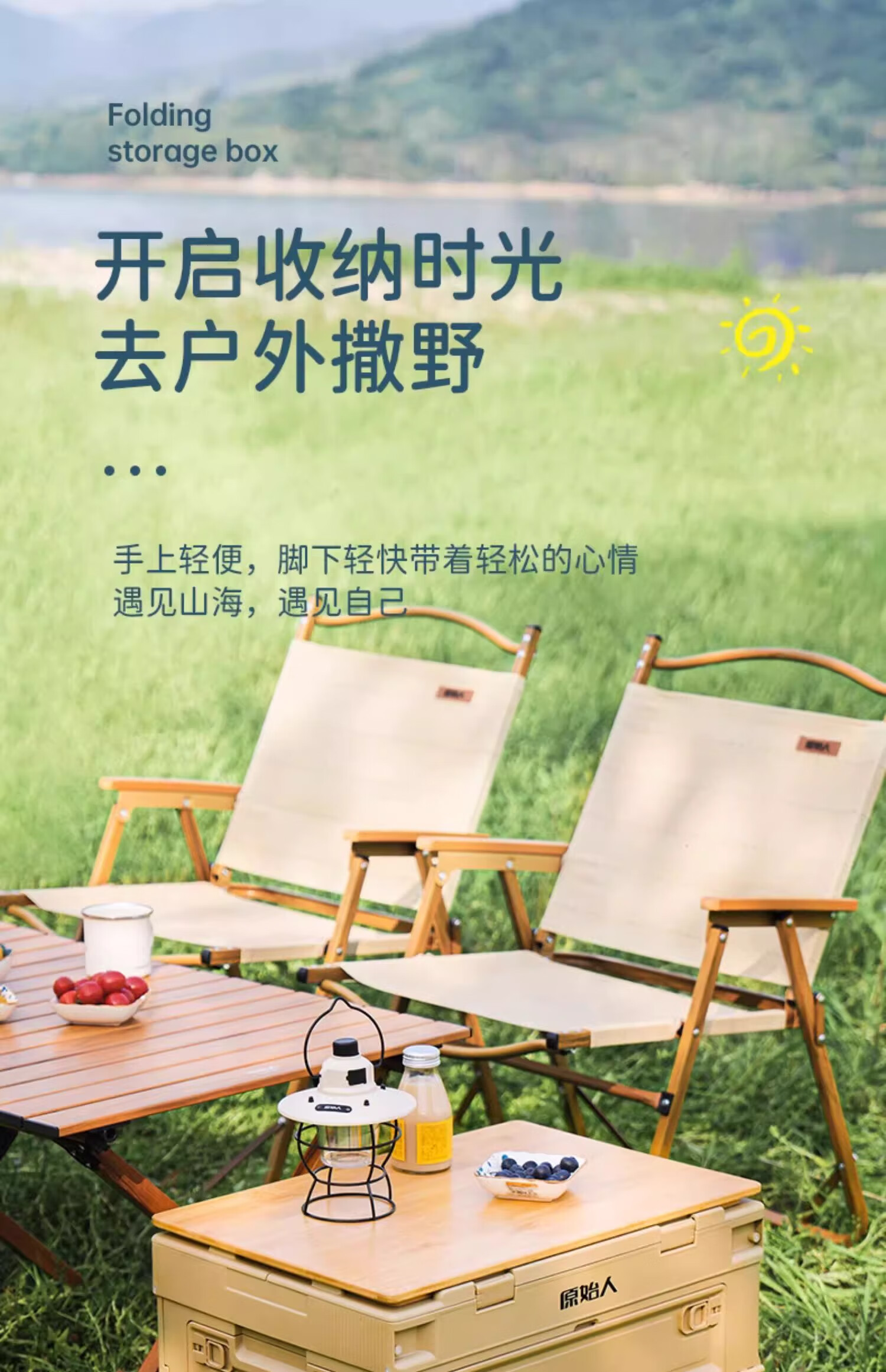 原始人户外露营折叠箱收纳储物置物箱子整理野营用品便携式折叠桌 【大号】50L
