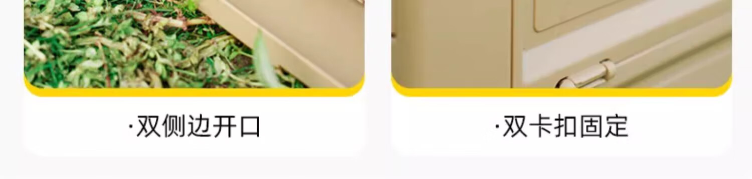 这个选了带菜板的款,既可以当桌子也可以切菜,各个翻板都有卡扣固定,上面和侧面的盖子还有插销锁扣,设计很合理。车里放这一个就够了。