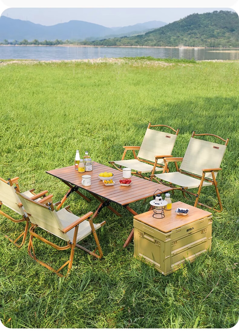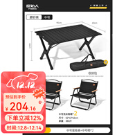 原始人(The Primitive)蛋卷桌户外折叠桌野餐桌露营桌子黑化风桌椅便携式装备用品 中号桌+【碳钢】中号椅*2