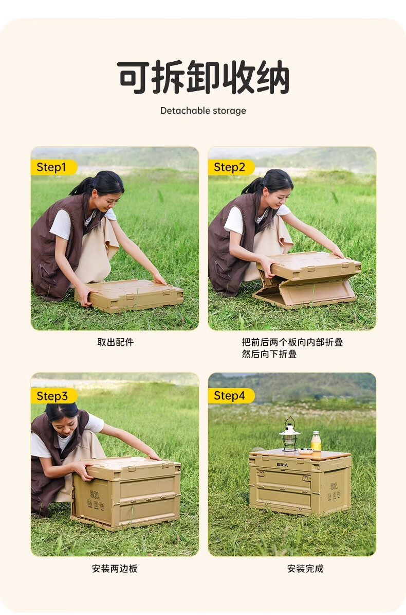 挪客Naturehike露营收纳箱户外大容量折叠便携收纳箱露营桌储物箱 浅米灰/23L