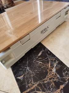 桌板不错,挺有分量的,箱子样子很好看,用着也很方便,塑料感比较强,细节做工挺一般的,有毛刺,大小还可以,折叠起来算是不太占地方,总体还算可以