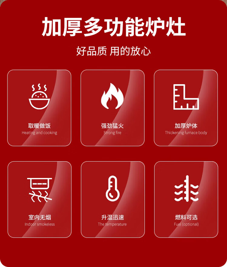 最主要的就是这款炉子确实可以做得到室内无烟。用起来取暖,做饭的效果都挺好。