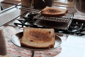 做工可以的,精致露营里的又一件小厨具。跟火枫的悬山烤面包片架子相比,柯曼的这一款一次一般只能烤一片,也可以一次放两片,但需要熟练的掌握火候,否则很容易烤焦。两者相比,柯曼由于悬架的高度相对较低,所以对食物而言,升温更快,而火枫的则恰恰相反。烤肉最好搭配锡纸来处理,否则油脂及胡渣需要费时费力来处理