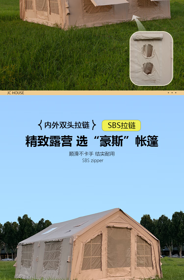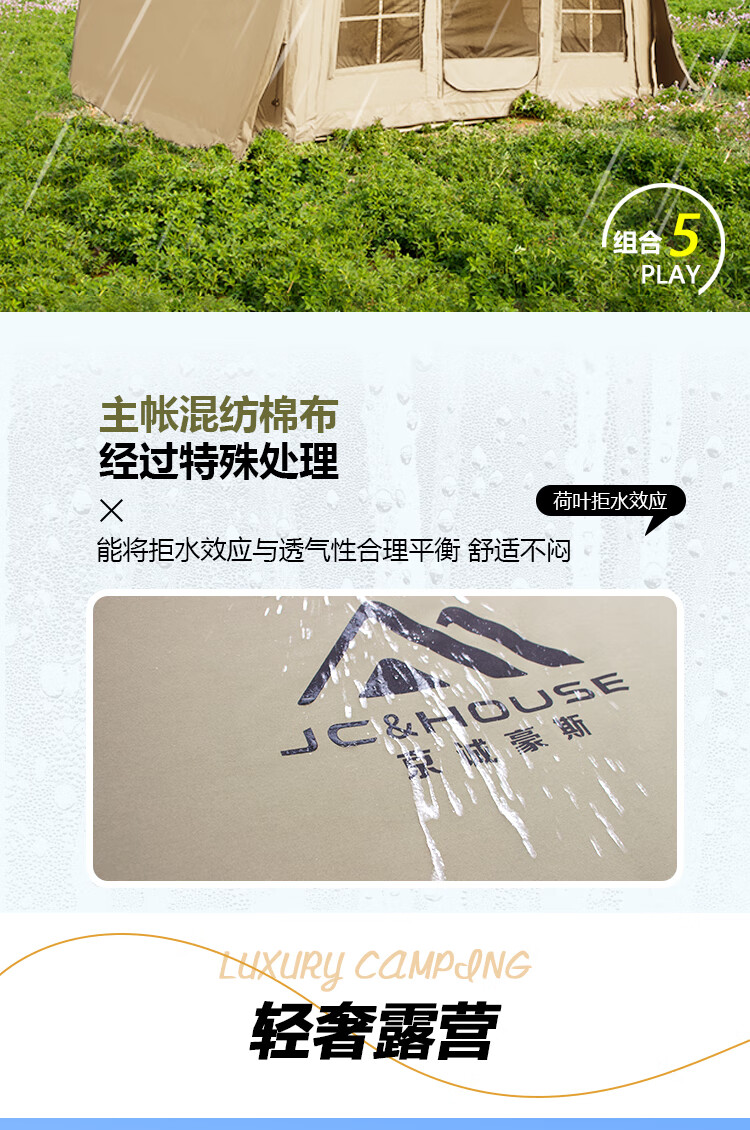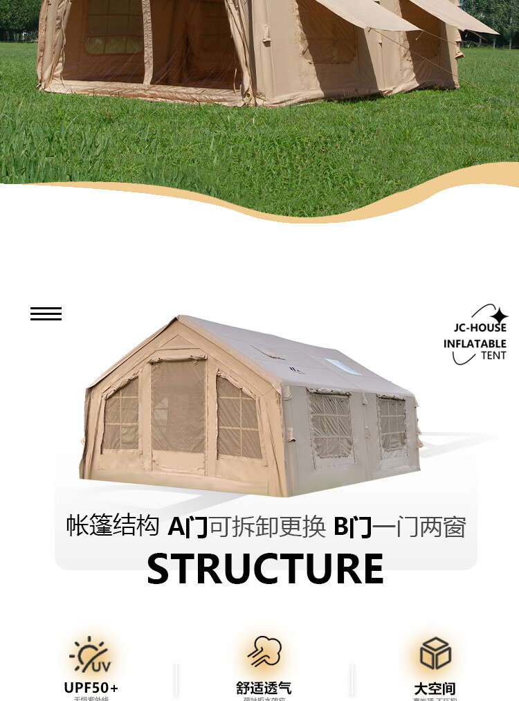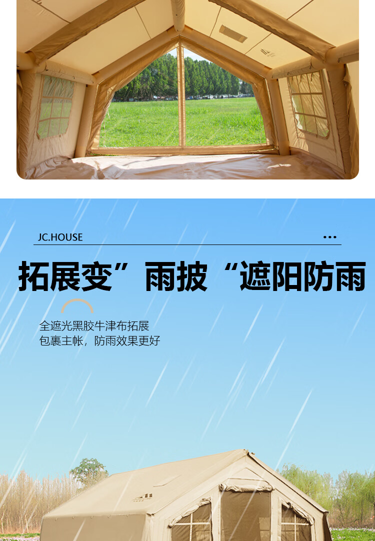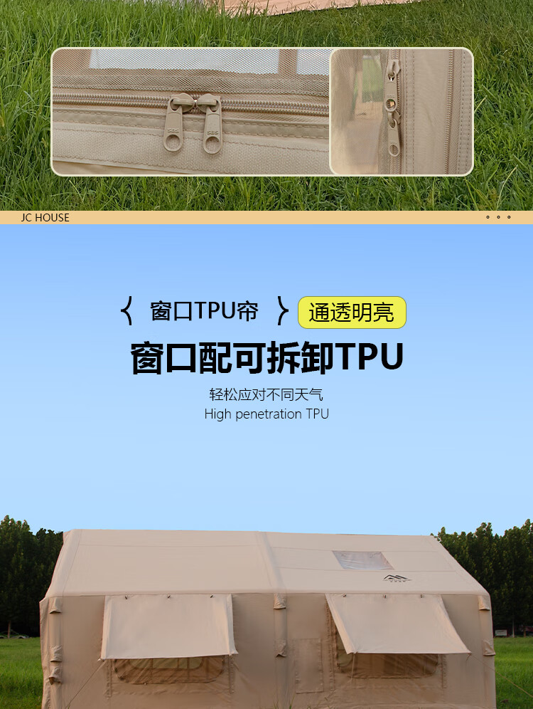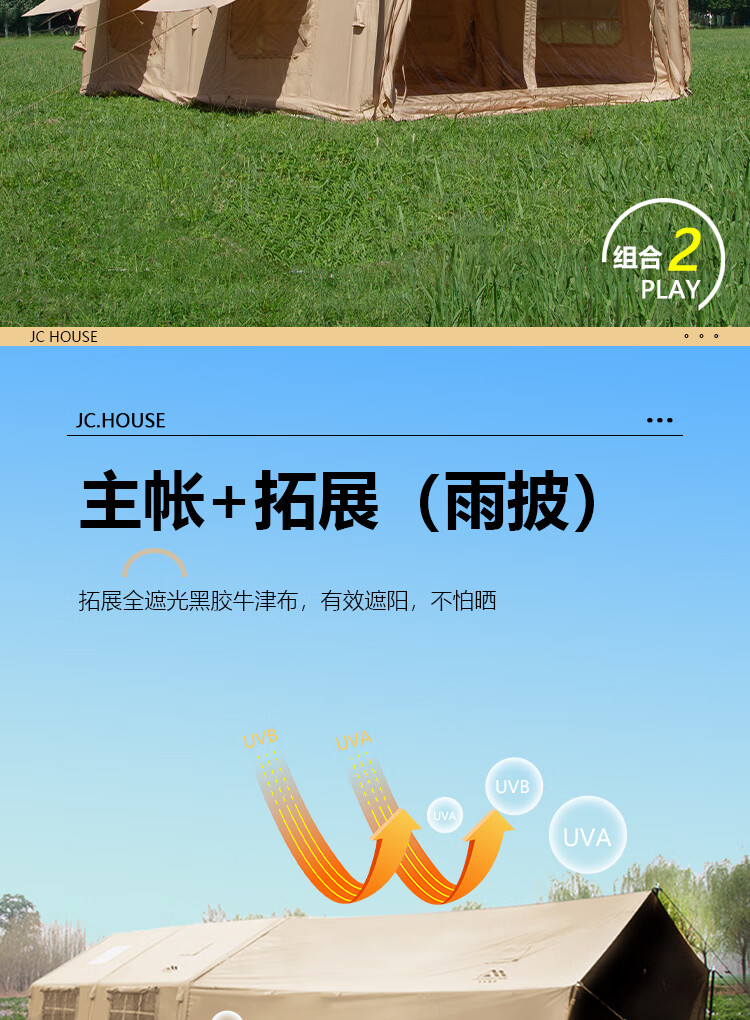 京诚豪斯JcHouse17.2㎡棉布充气帐篷精致露营17.2平户外搬家过夜屋脊 豪斯17.2平米色主帐+黑胶天幕