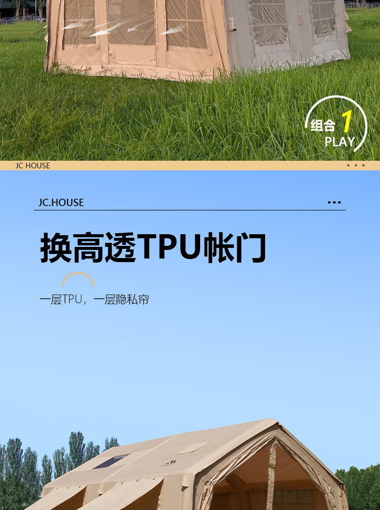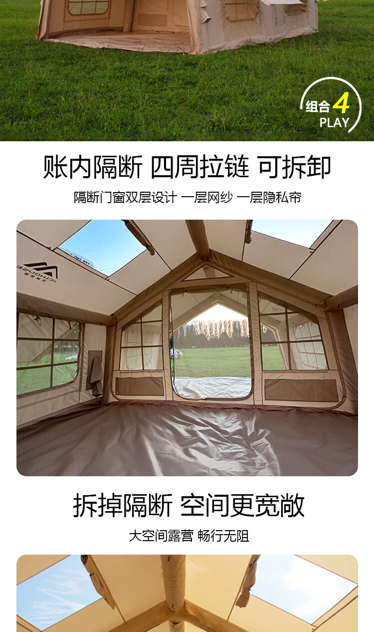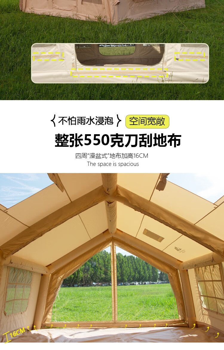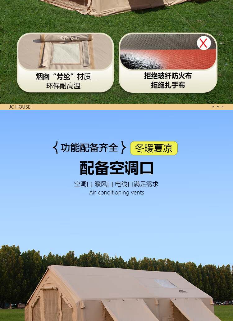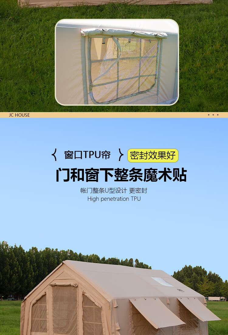 京诚豪斯JcHouse17.2㎡棉布充气帐篷精致露营17.2平户外搬家过夜屋脊 豪斯17.2平米色主帐+黑胶天幕