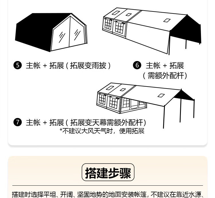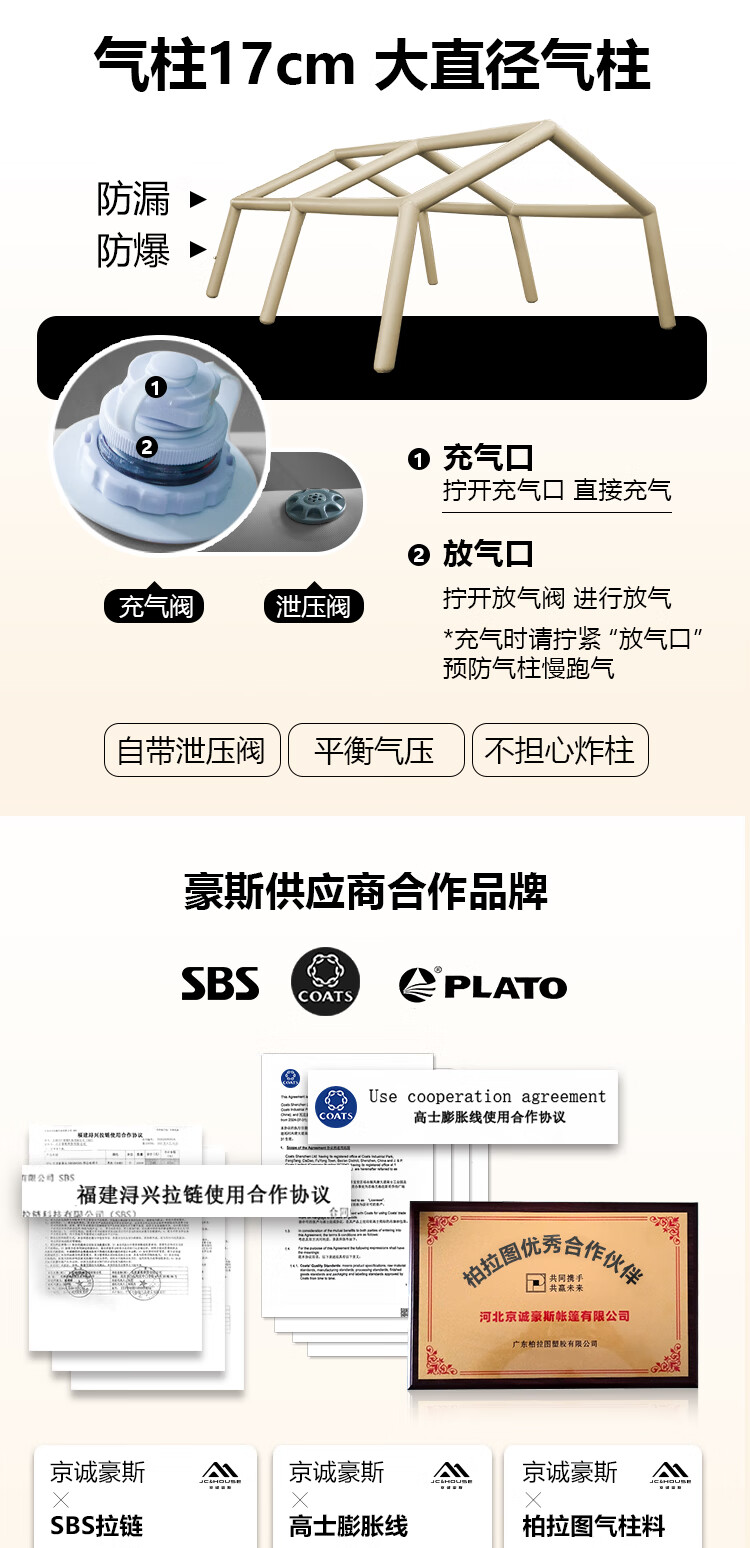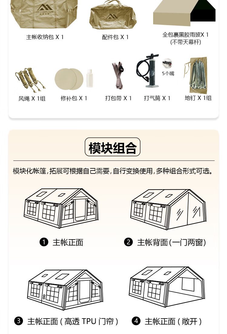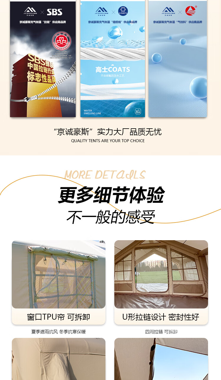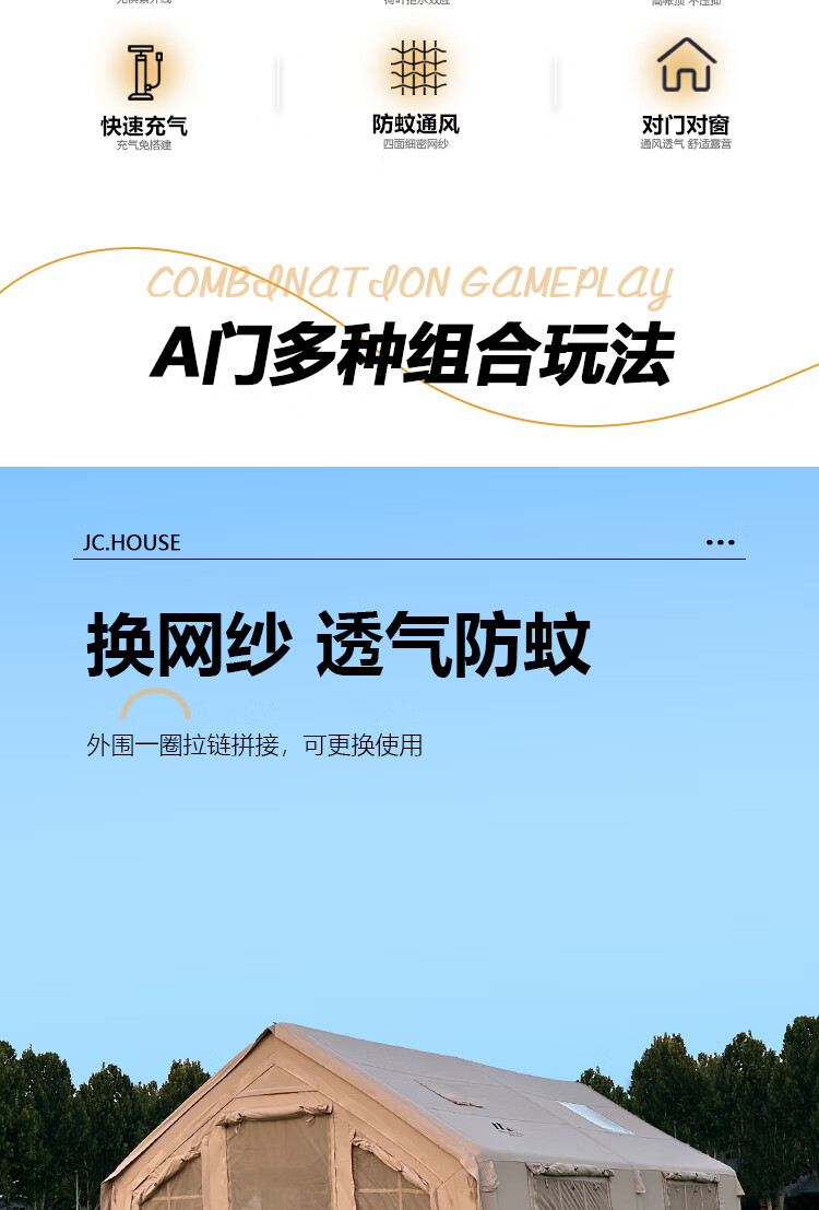 京诚豪斯JcHouse17.2㎡棉布充气帐篷精致露营17.2平户外搬家过夜屋脊 豪斯17.2平米色主帐+黑胶天幕