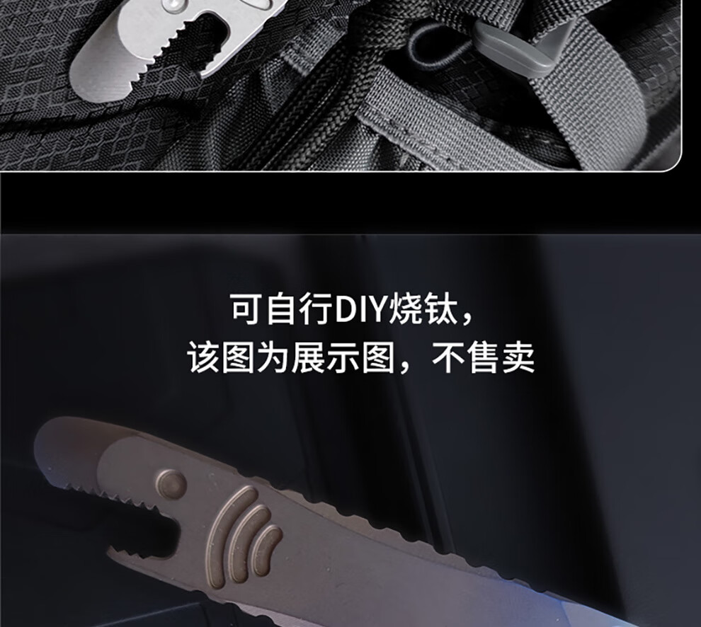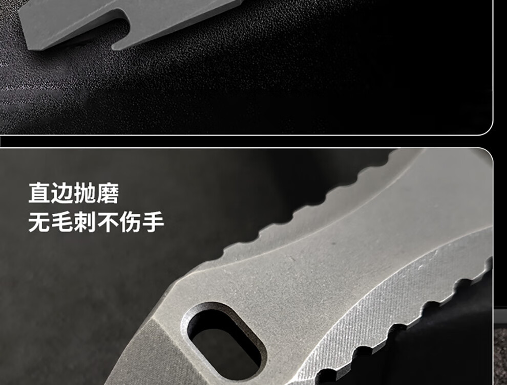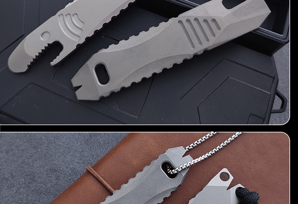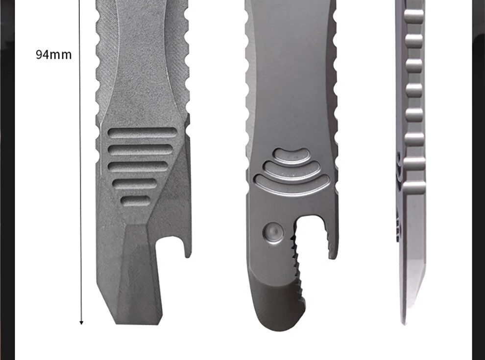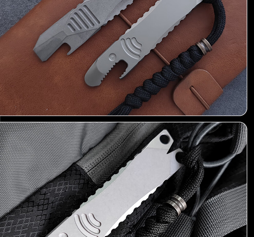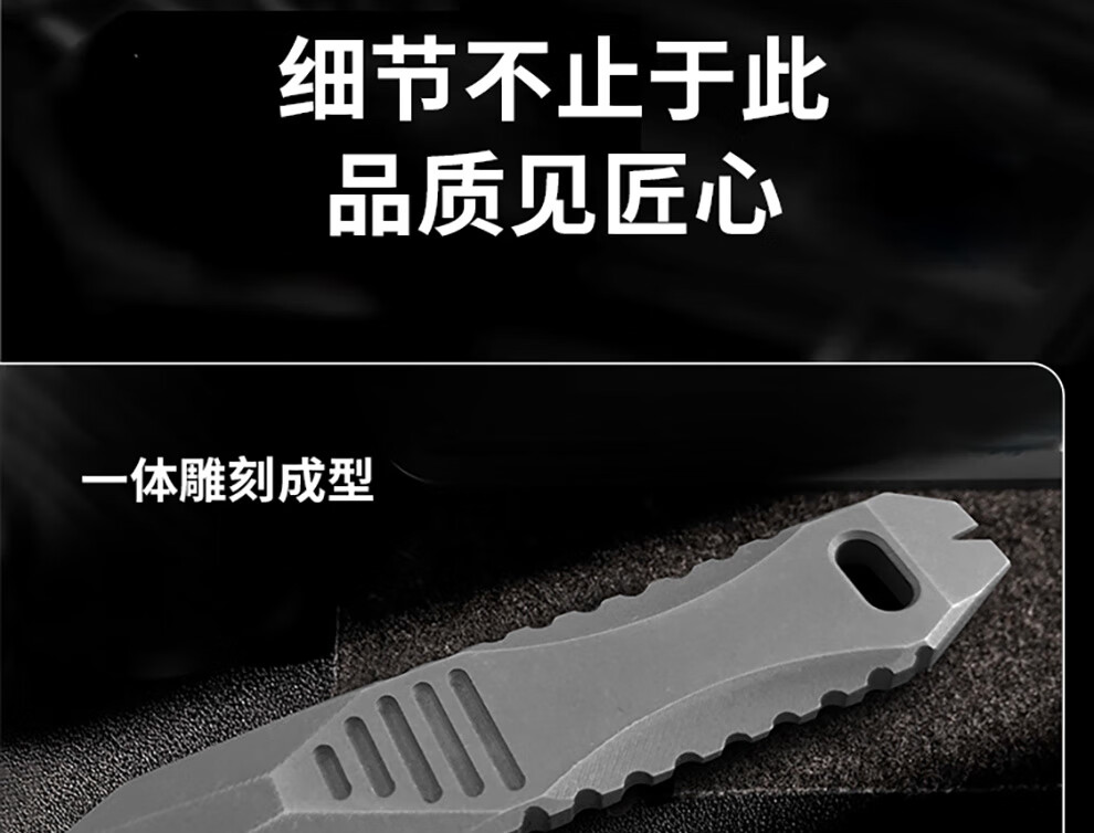 酷撼钛合金撬棍带割刀防身户外野营多功能EDC撬棒开瓶器拆箱起钉神器 石洗款
