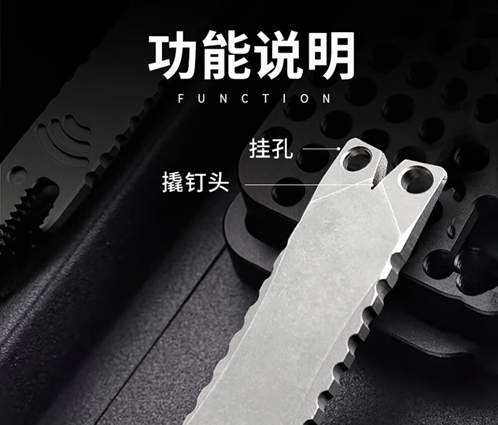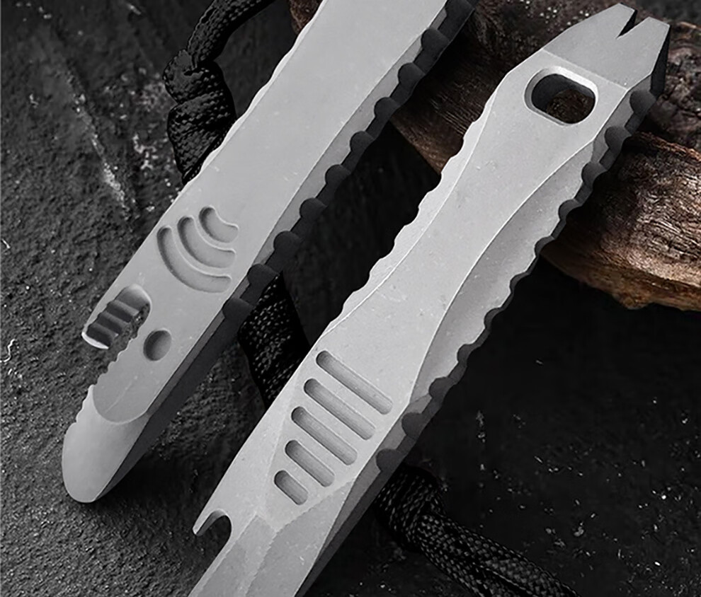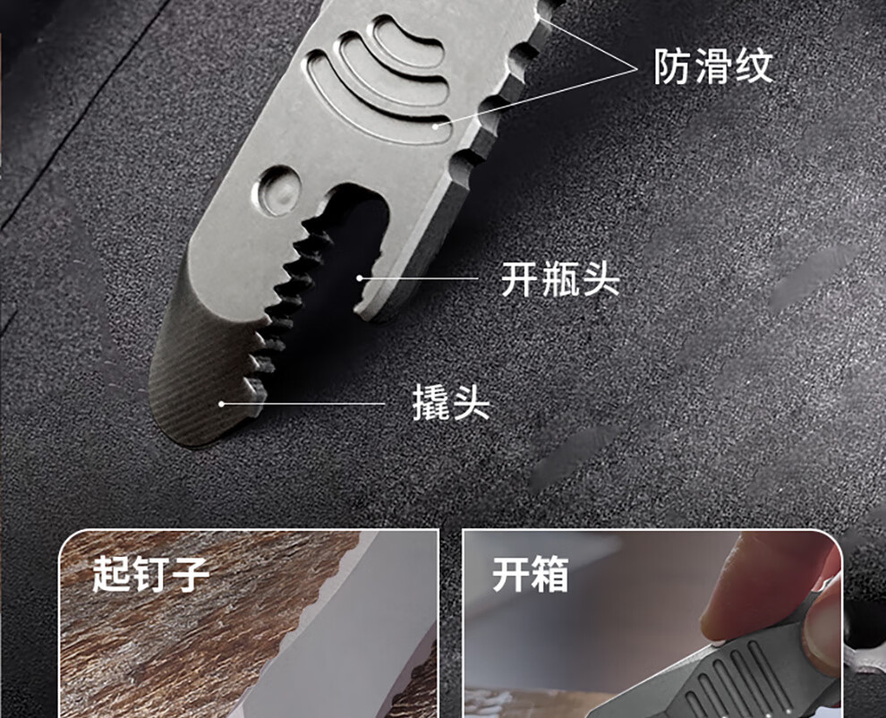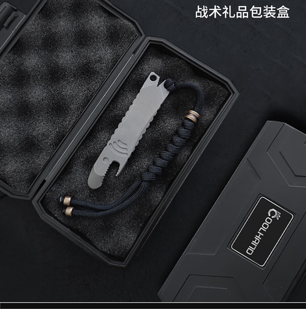 酷撼鲨鱼撬棍钛合金高硬度撬棒起钉开瓶器拆箱开盖多功能户外防身工具 石洗半齿款(挂绳+挂链+钥匙扣)